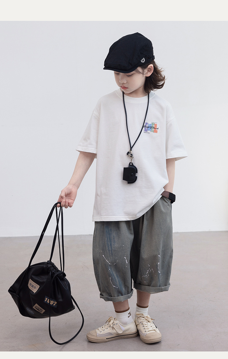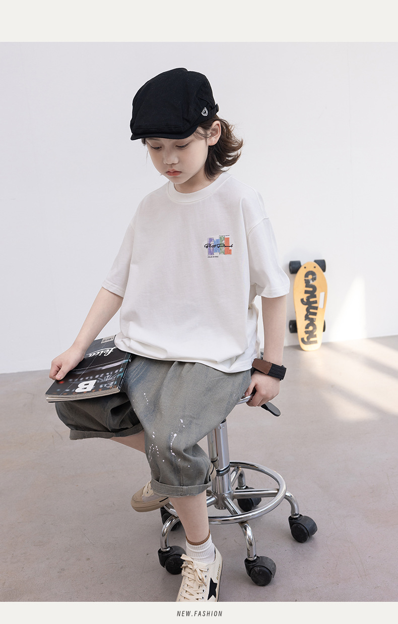 남학생 반소매 티셔츠 여름 2025 년 새 어린이 여름 반소매 티셔츠 빅 보이 탑 스타일러스 티셔츠 도매스토어 가기