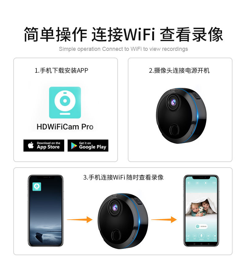 HDQ15 무선 wifi 카메라 홈 적외선 야간 투시경 HD 보안 감시 야외 스포츠 여행 카메라스토어 가기