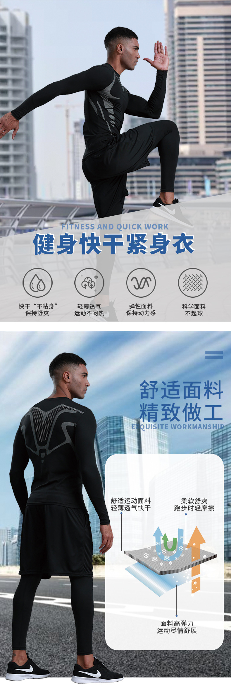 공장 직접 판매 스타킹 남성 스포츠 통기성 피트니스 의류 사이클링 훈련 긴팔 탄성 러닝 베이스 속건성 의류스토어 가기