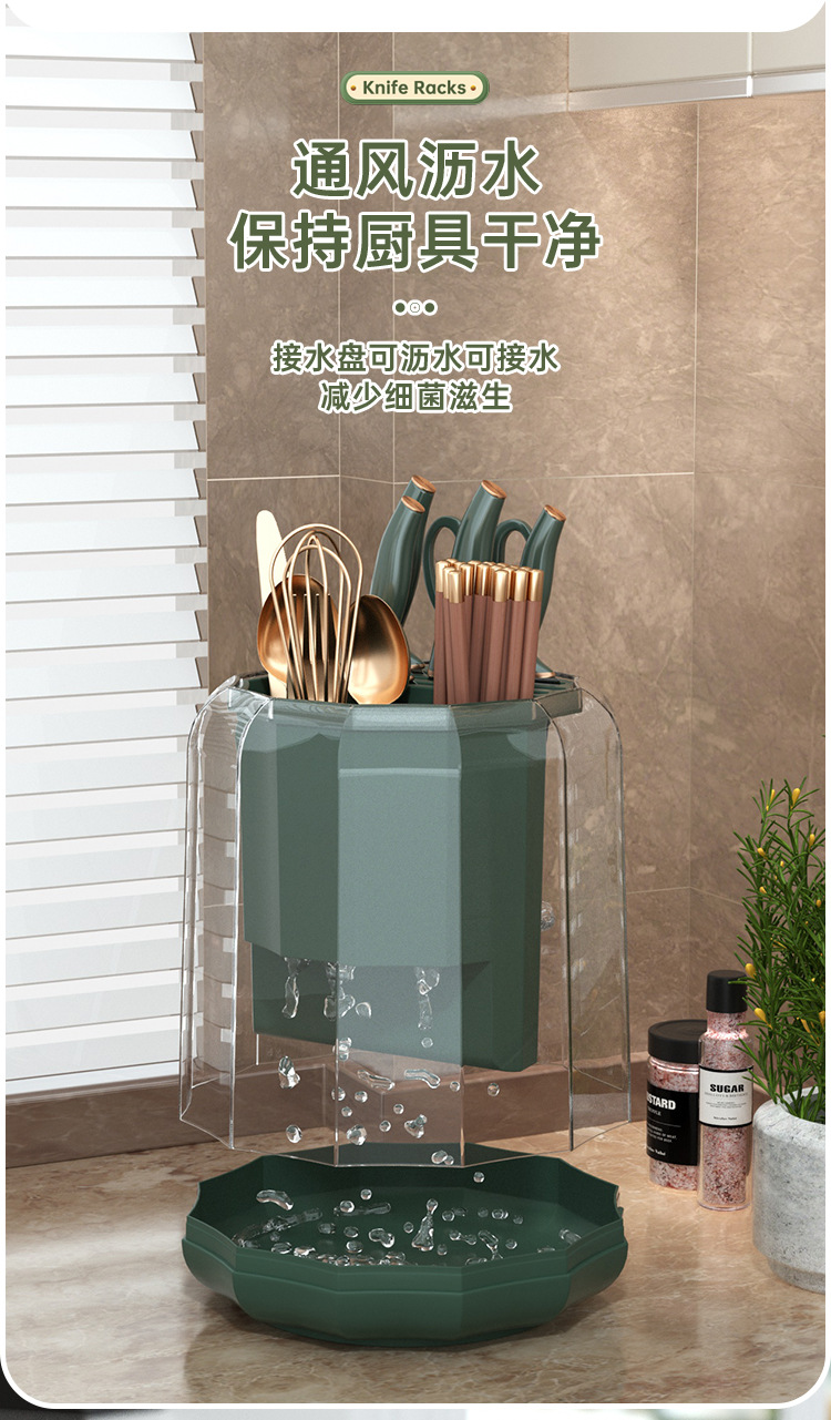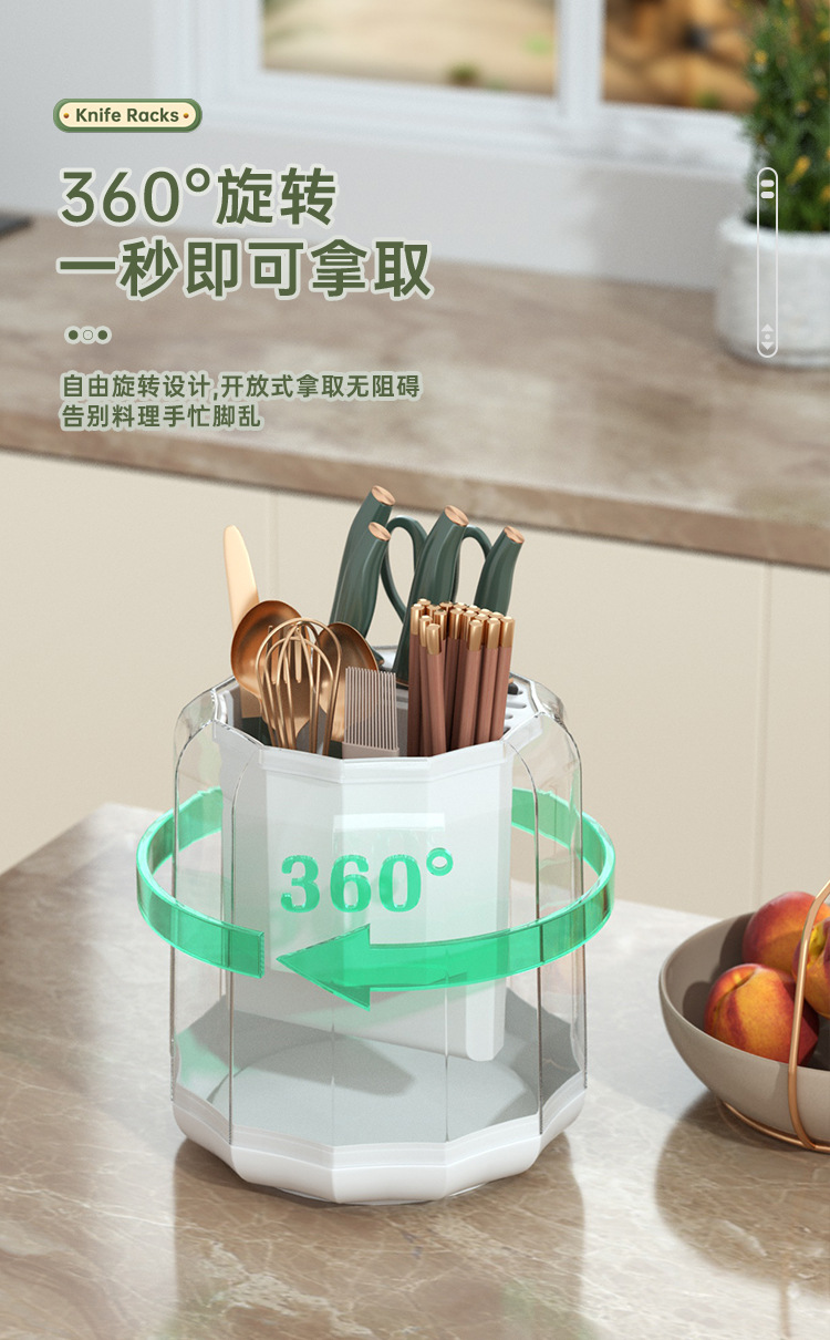 주방 회전 칼 홀더 보관함 조리대 다기능 젓가락 튜브 칼 홀더 통합 보관함 가정용 칼 홀더