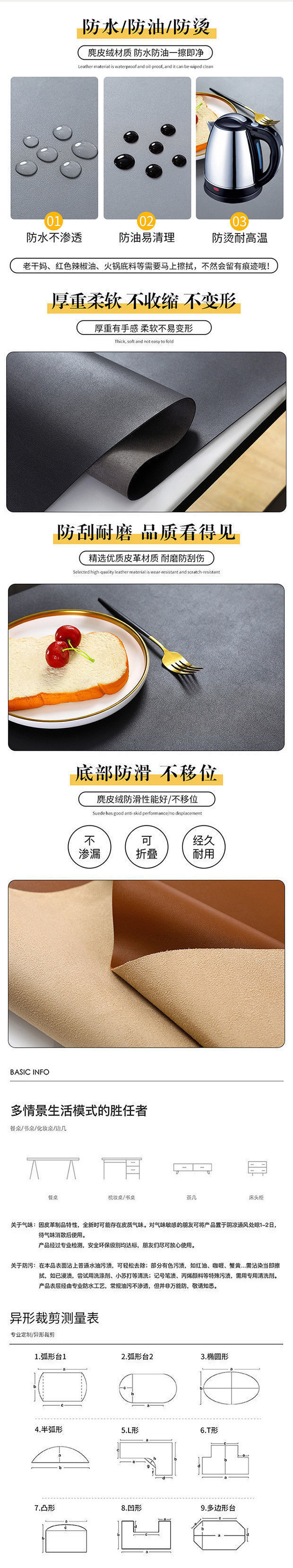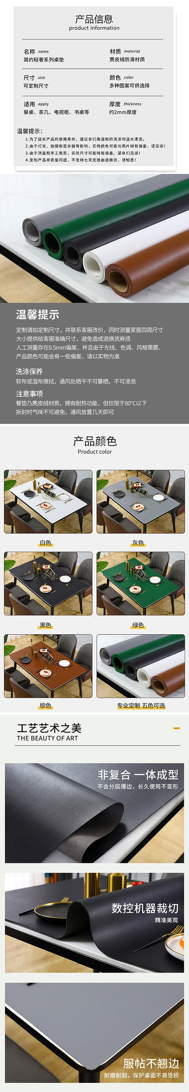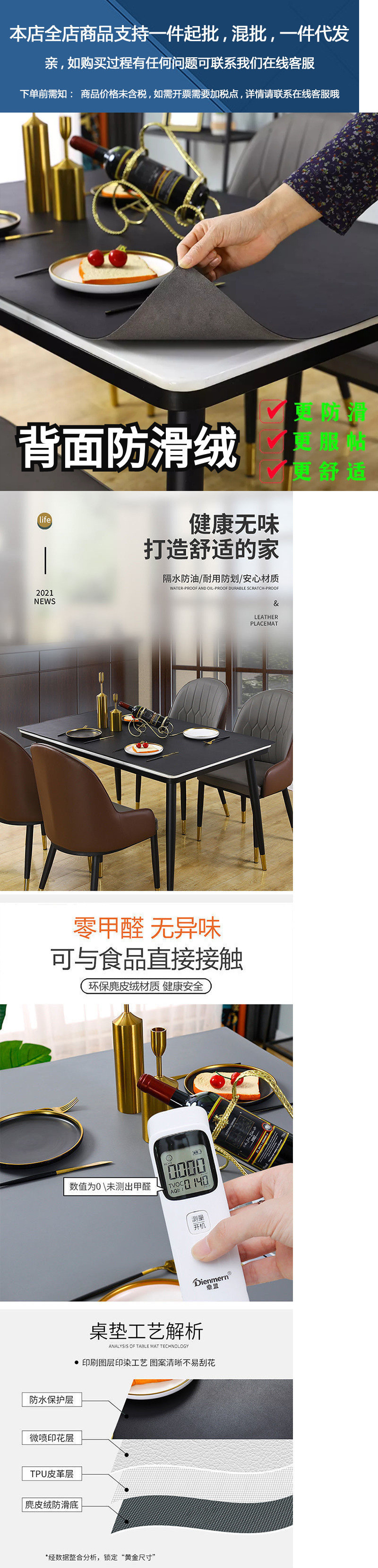 새로운 스타일의 가죽 테이블 매트 인 스타일 간단한 식탁 천 방수 및 내유성 비 빨 커피 테이블 TV 캐비닛 직사각형 단색