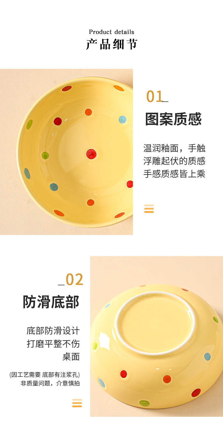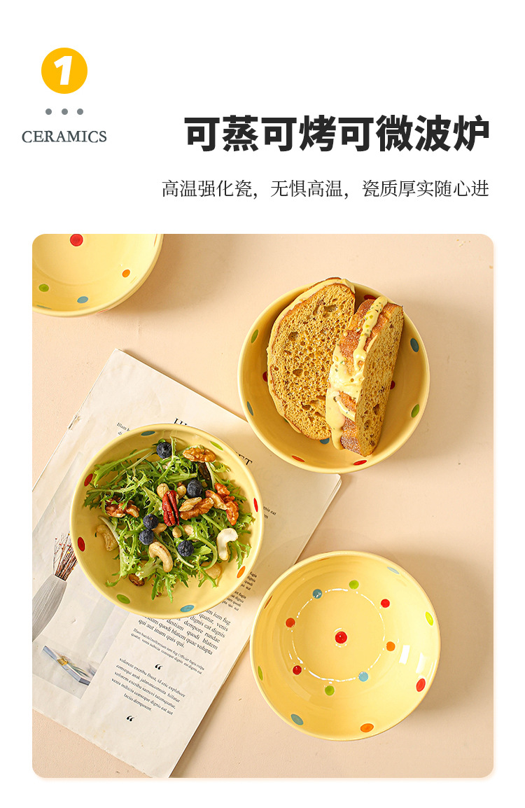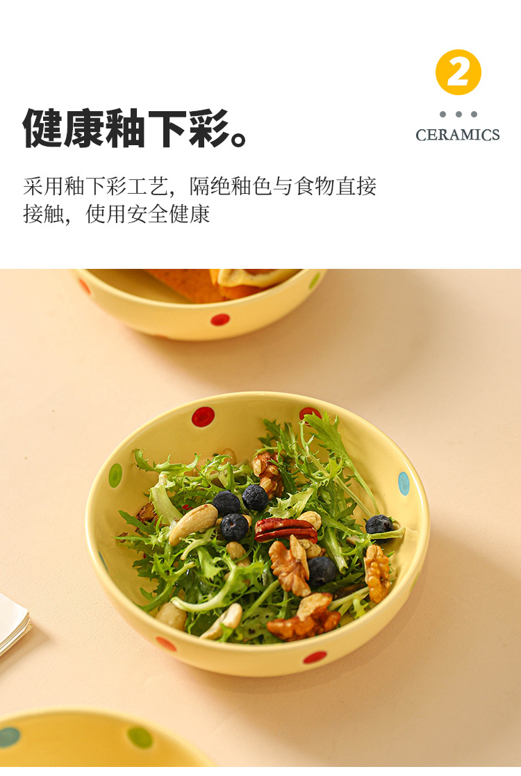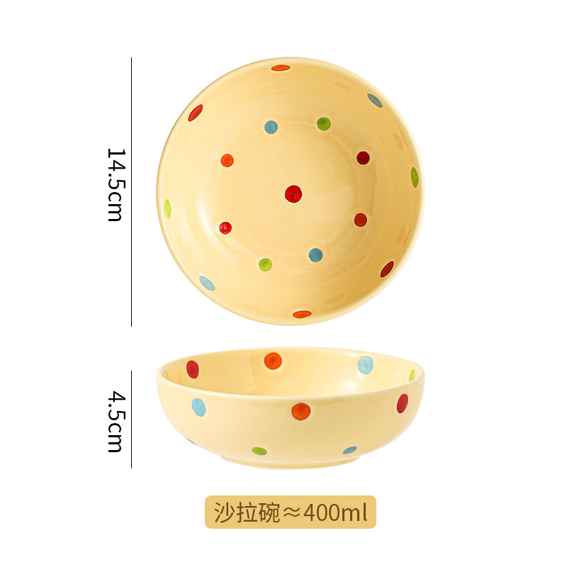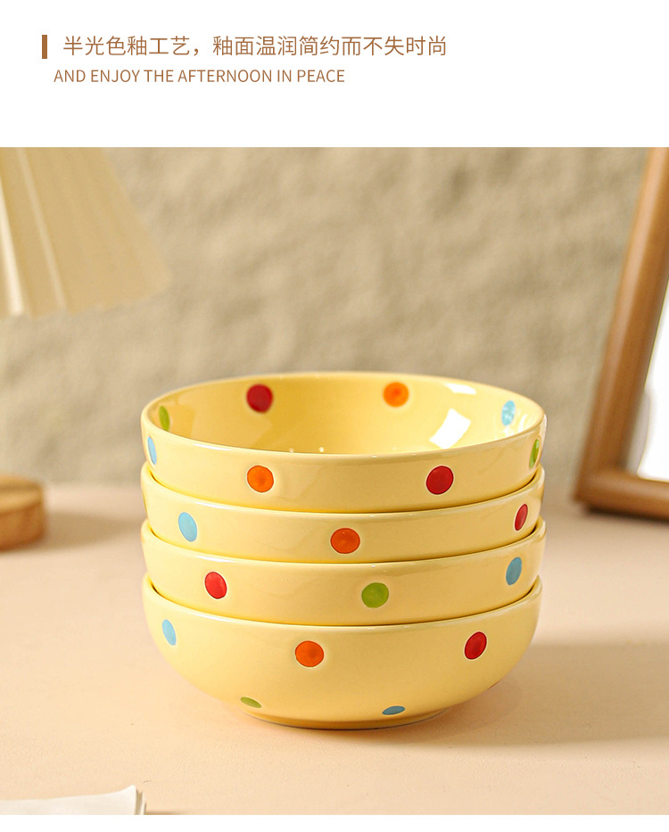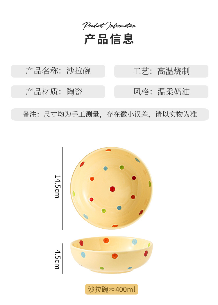 새로운 손으로 그린 언더 유약 컬러 5.5 인치 국수 그릇 세라믹 식기 스타일 크림 컬러 웨이브 요구르트 샐러드 그릇