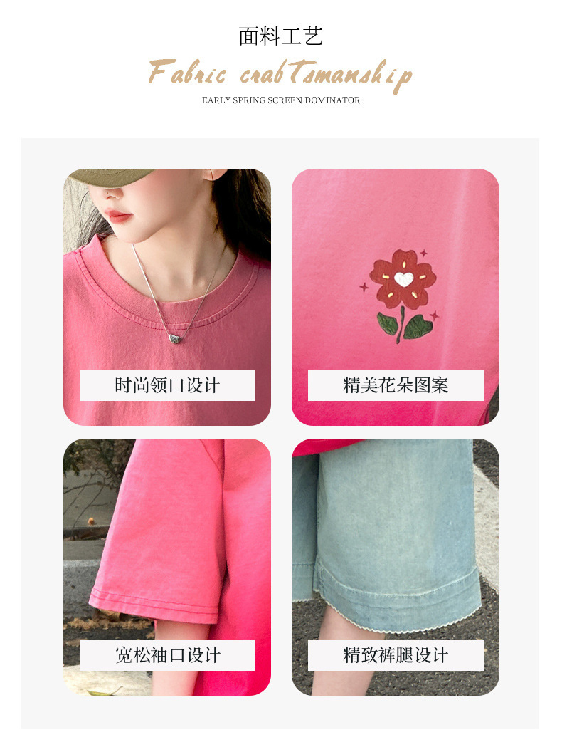 대외 무역 소녀 드롭 염색 꽃 반팔 티셔츠 소녀 한국 스타일 데님 바지 캐주얼 정장 여름 어린이 얇은 스타일스토어 가기