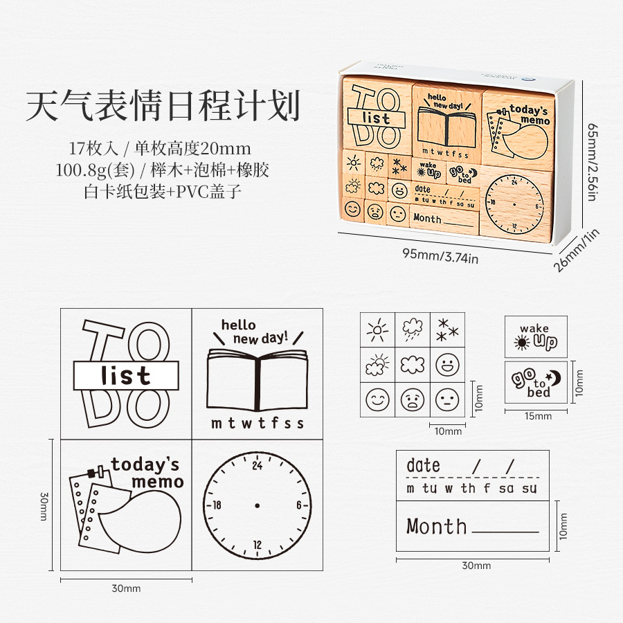 우드 스탬프 타임 우드 스탬프 세트 상자 주 및 월 디지털 핸드북 장식 크로스보더 날짜 계획 시간 스탬프스토어 가기