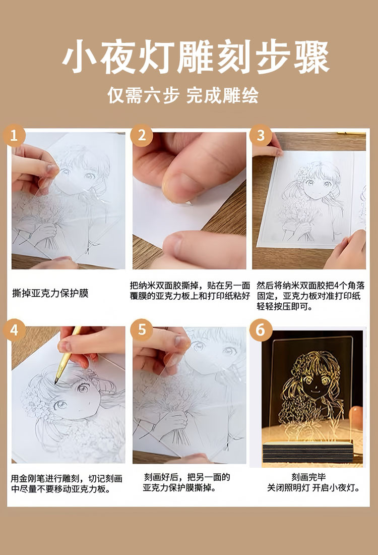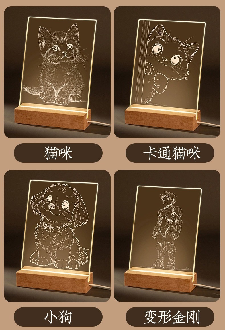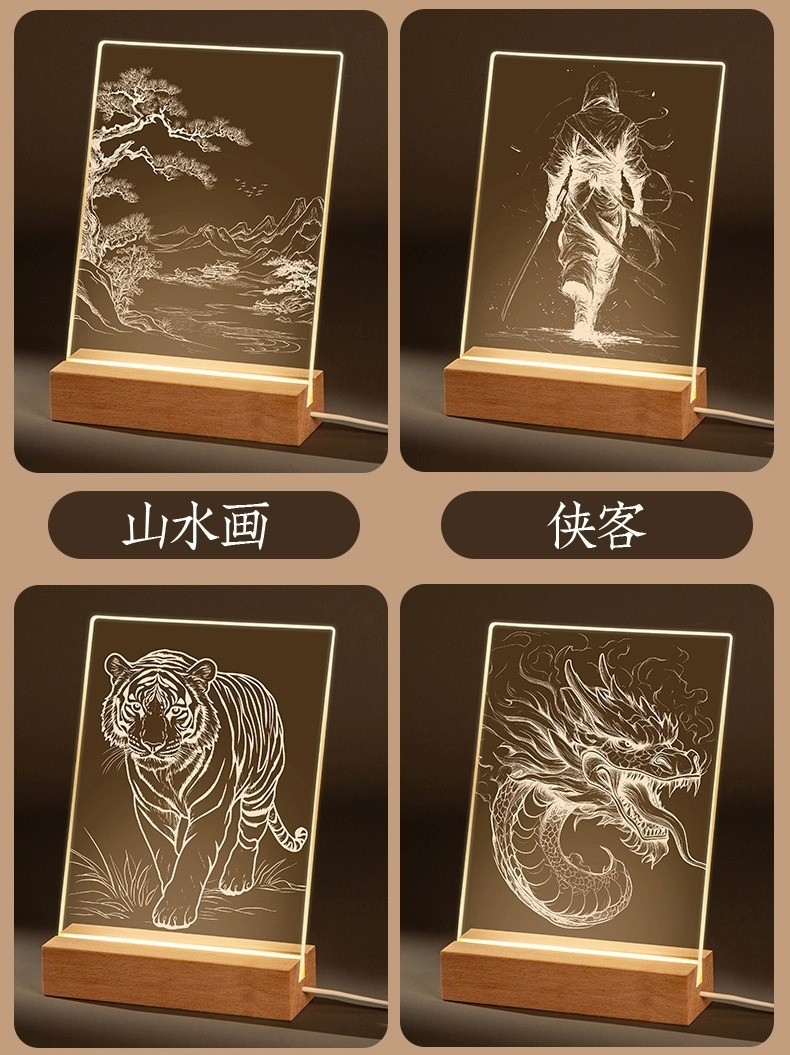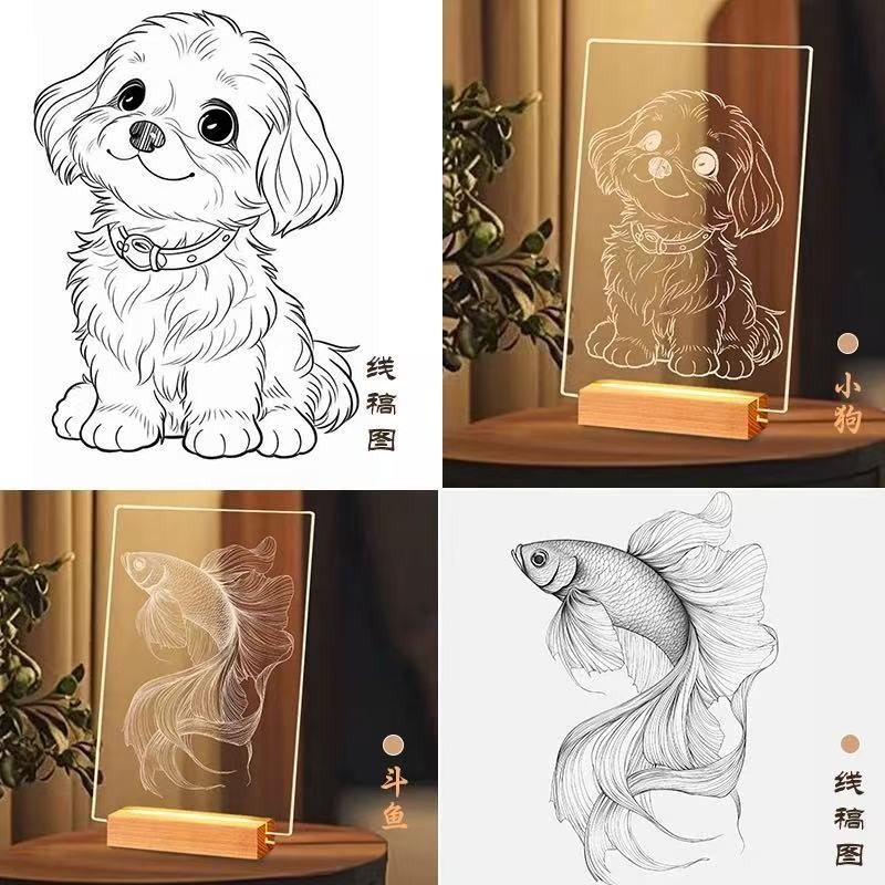수제 DIY 조각 그림 분위기 조명 창의적 재료 패키지 취미 수업 LED 아크릴 발광판 야간등