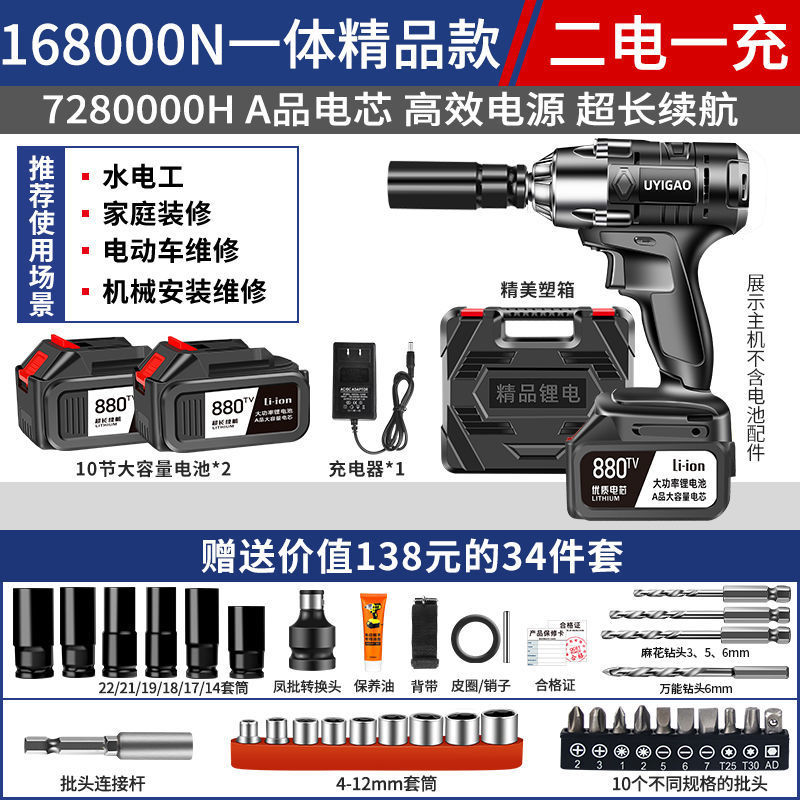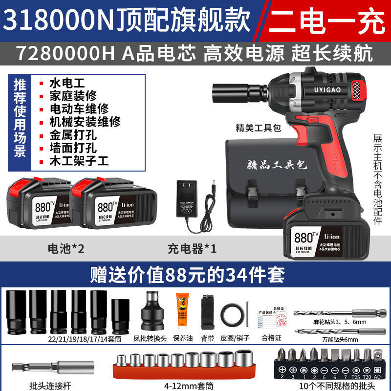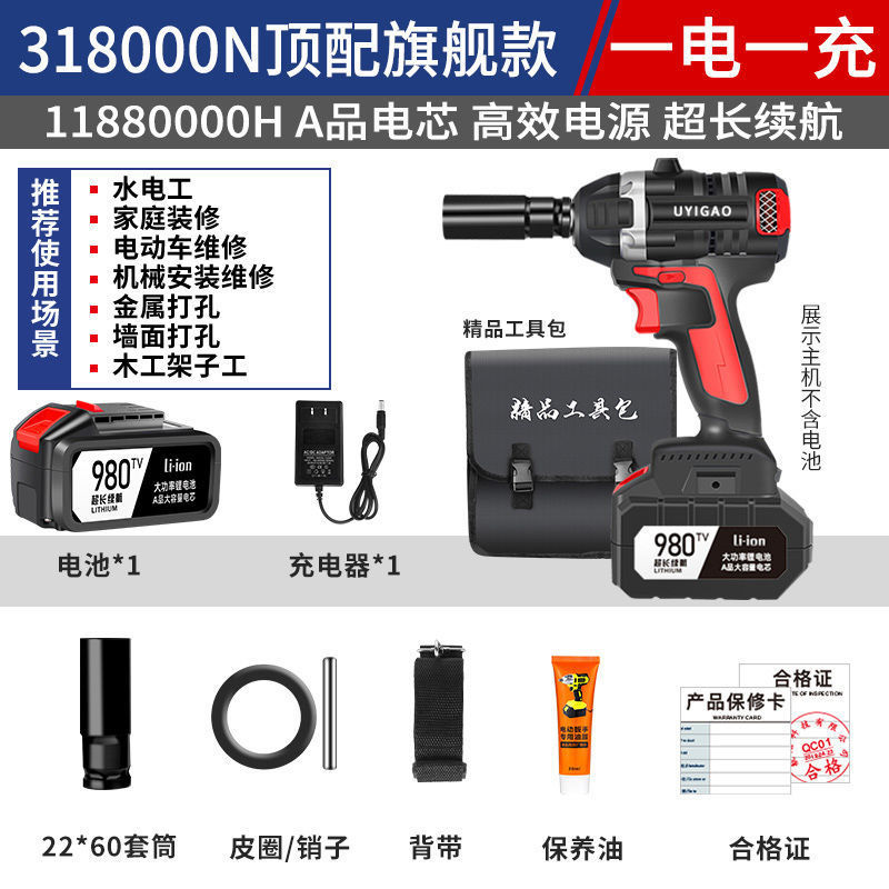 브러시리스 전기 렌치 리튬 배터리 충전 렌치 대형 토크 충격 자동차 발 손 발판 목공 소매 공기총스토어 가기