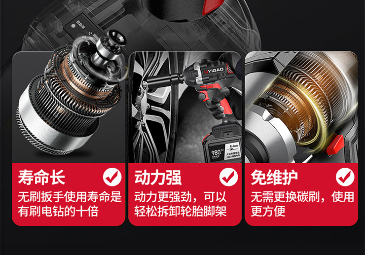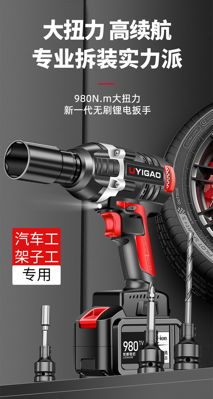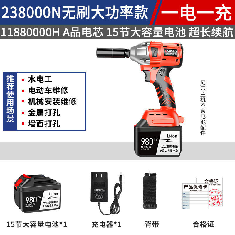 브러시리스 전기 렌치 리튬 배터리 충전 렌치 대형 토크 충격 자동차 발 손 발판 목공 소매 공기총