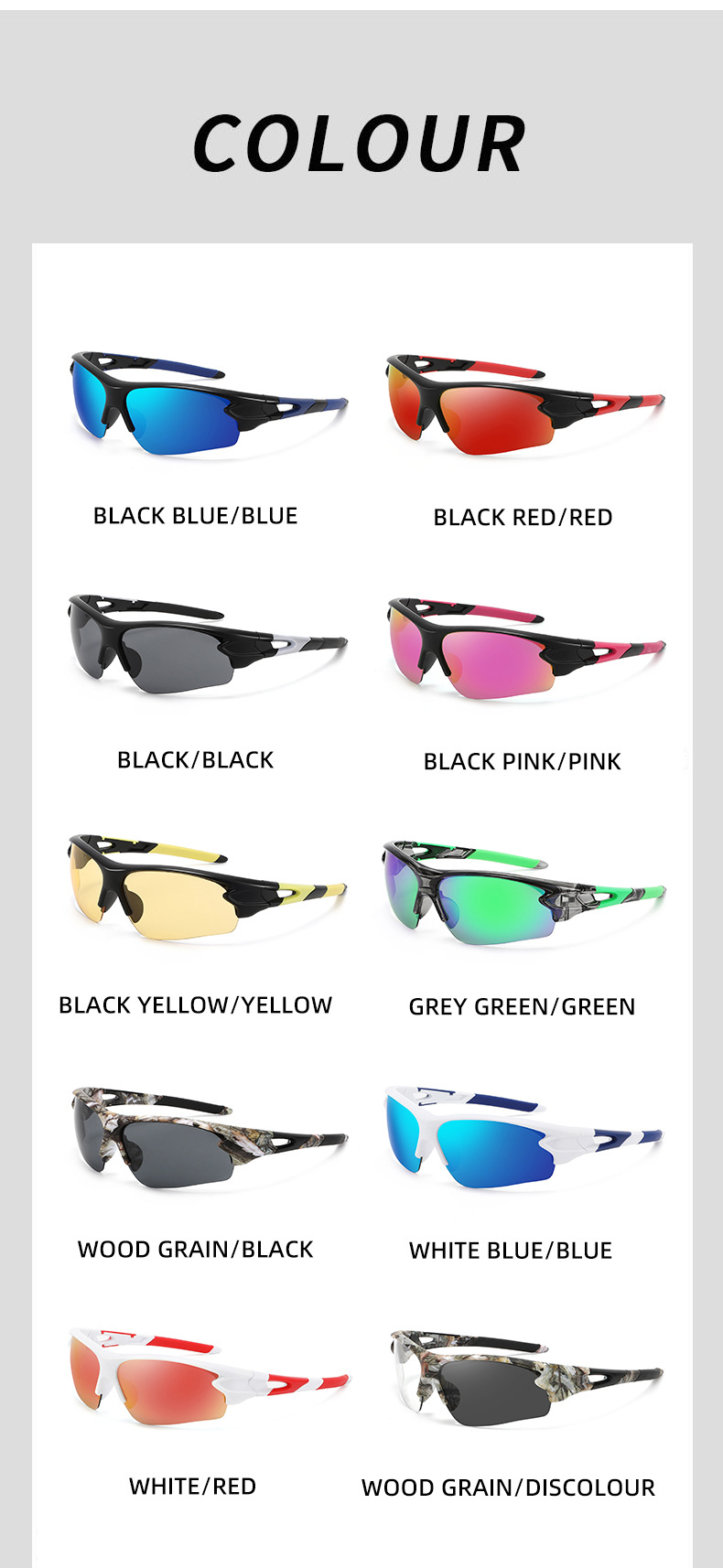 국경 간 유럽과 미국의 하프 프레임 안경 남녀 야외 스포츠 승마 선글라스 낚시 눈 보호 방풍 선글라스