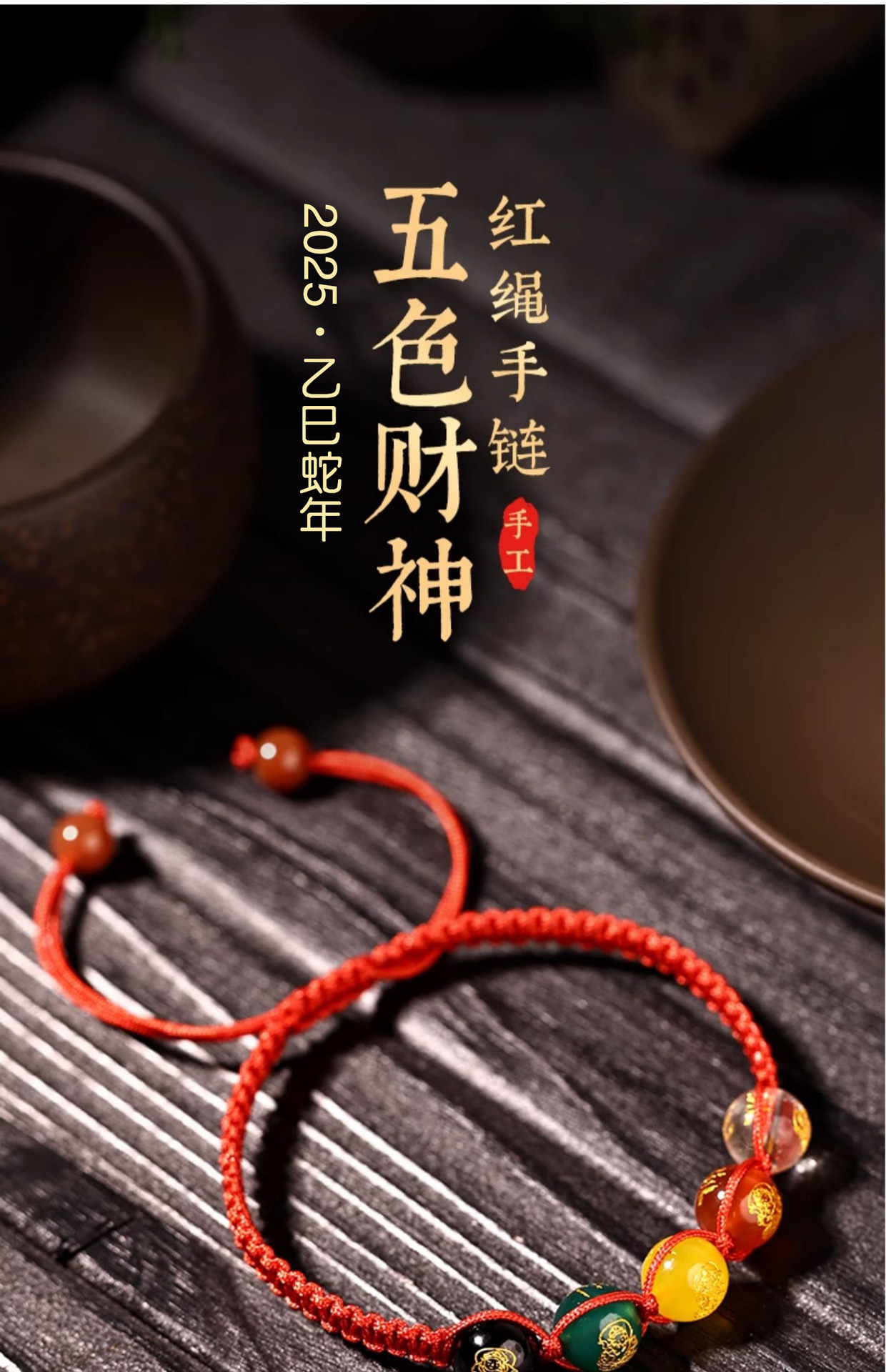 Putuo Mountain Flagship 2025 년 뱀의 5 자 신의 부 붉은 로프 팔찌 짠 루시드 조정 가능한 핸드 로프