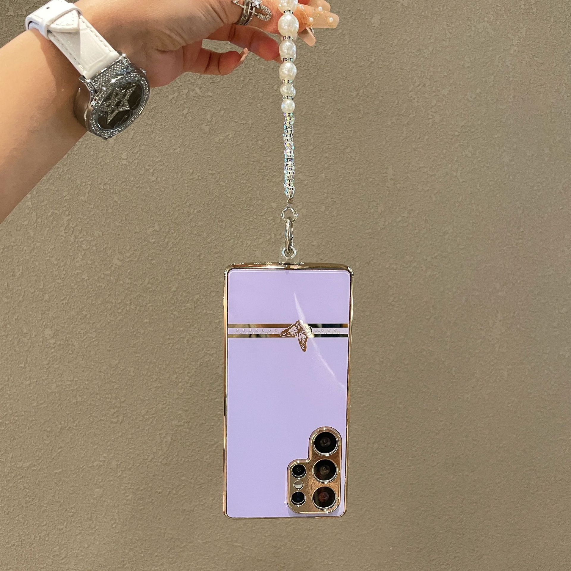 삼성 S25Ultra 포인트 다이아몬드 나비 팔찌 S24FE 휴대폰 케이스 Apple A56 전기 도금 케이스 A55에 적합한 국경 간 적용