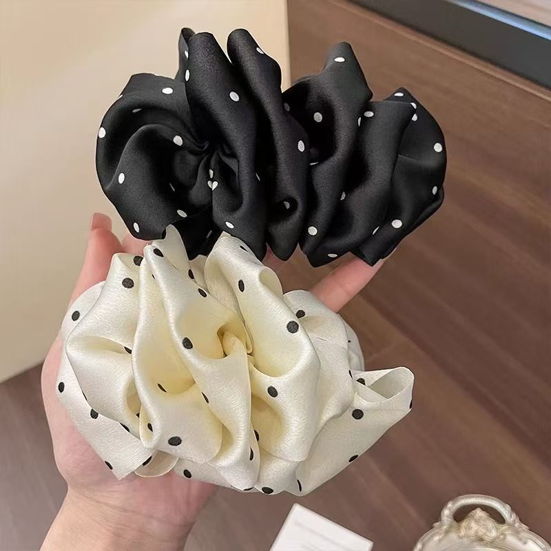 프랑스 레트로 웨이브 도트 바나나 클립 크로스 주름진 구름 버블 웨이브 도트 꽃 달콤한 소녀 분위기 헤어핀