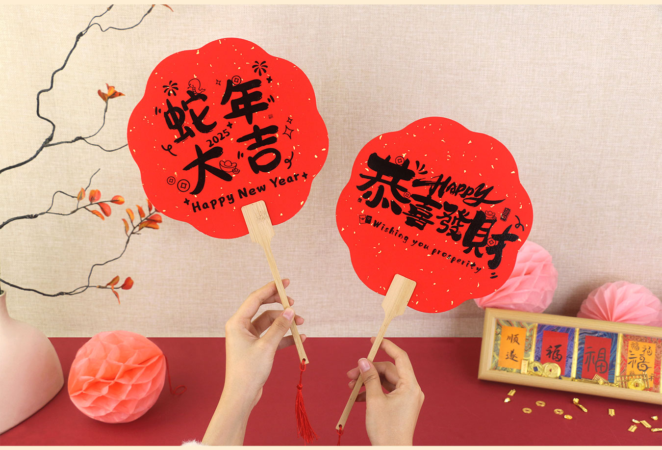 라이스페이퍼 붓글씨, 중국풍, 고대풍, 중국풍 원형부채, 새해부채, 큰 빨간색 뱀부채, 축제새해, 행운의 서예