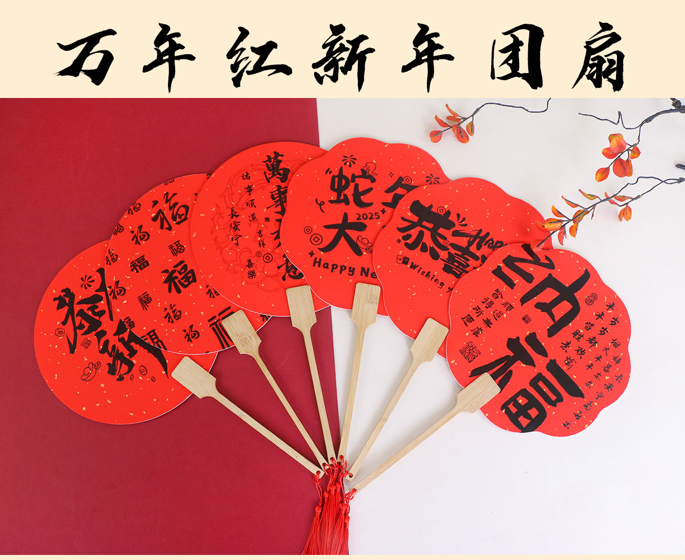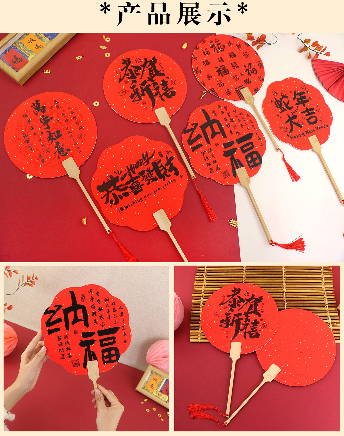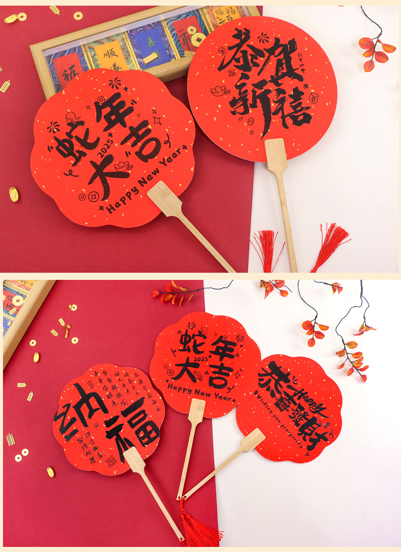 라이스페이퍼 붓글씨, 중국풍, 고대풍, 중국풍 원형부채, 새해부채, 큰 빨간색 뱀부채, 축제새해, 행운의 서예스토어 가기