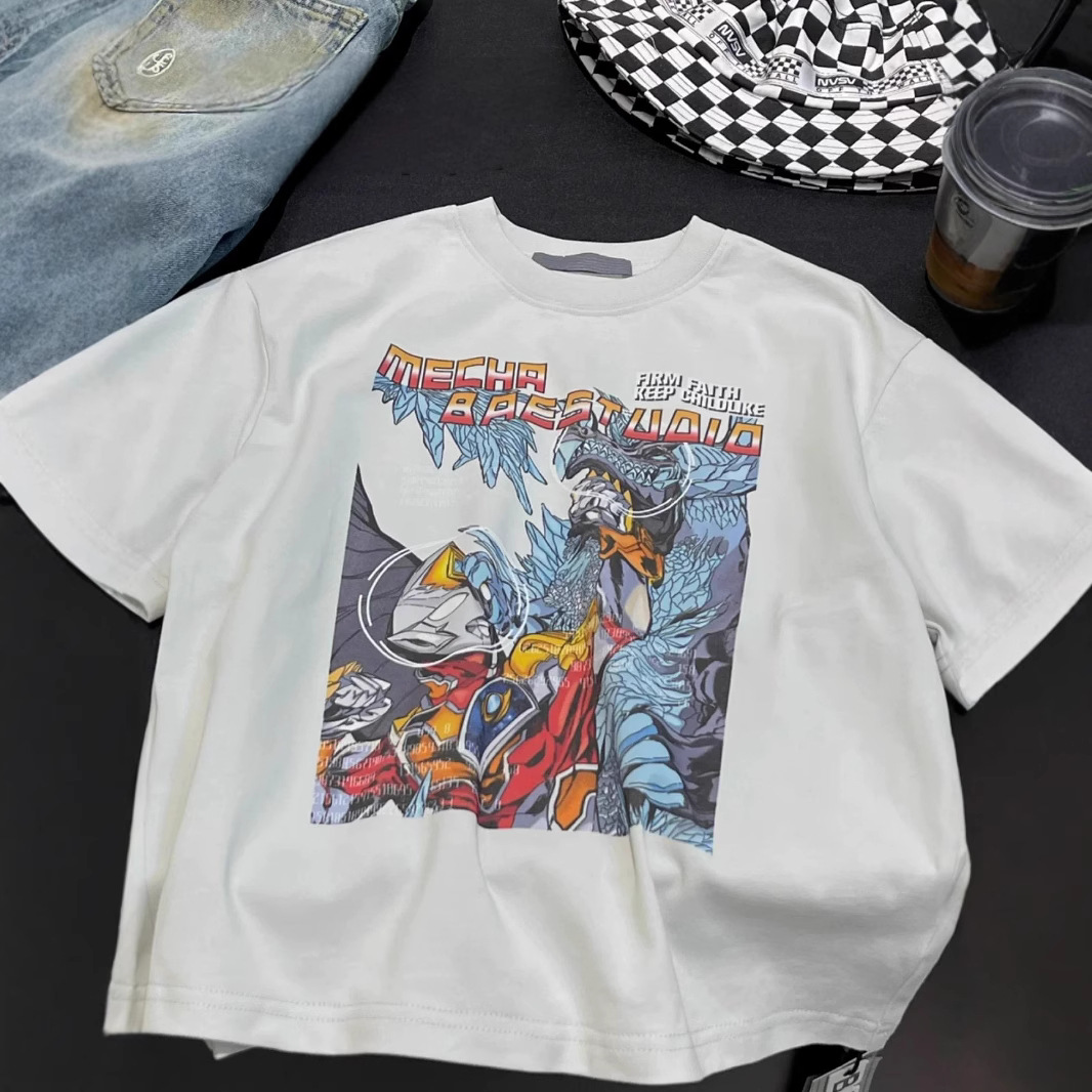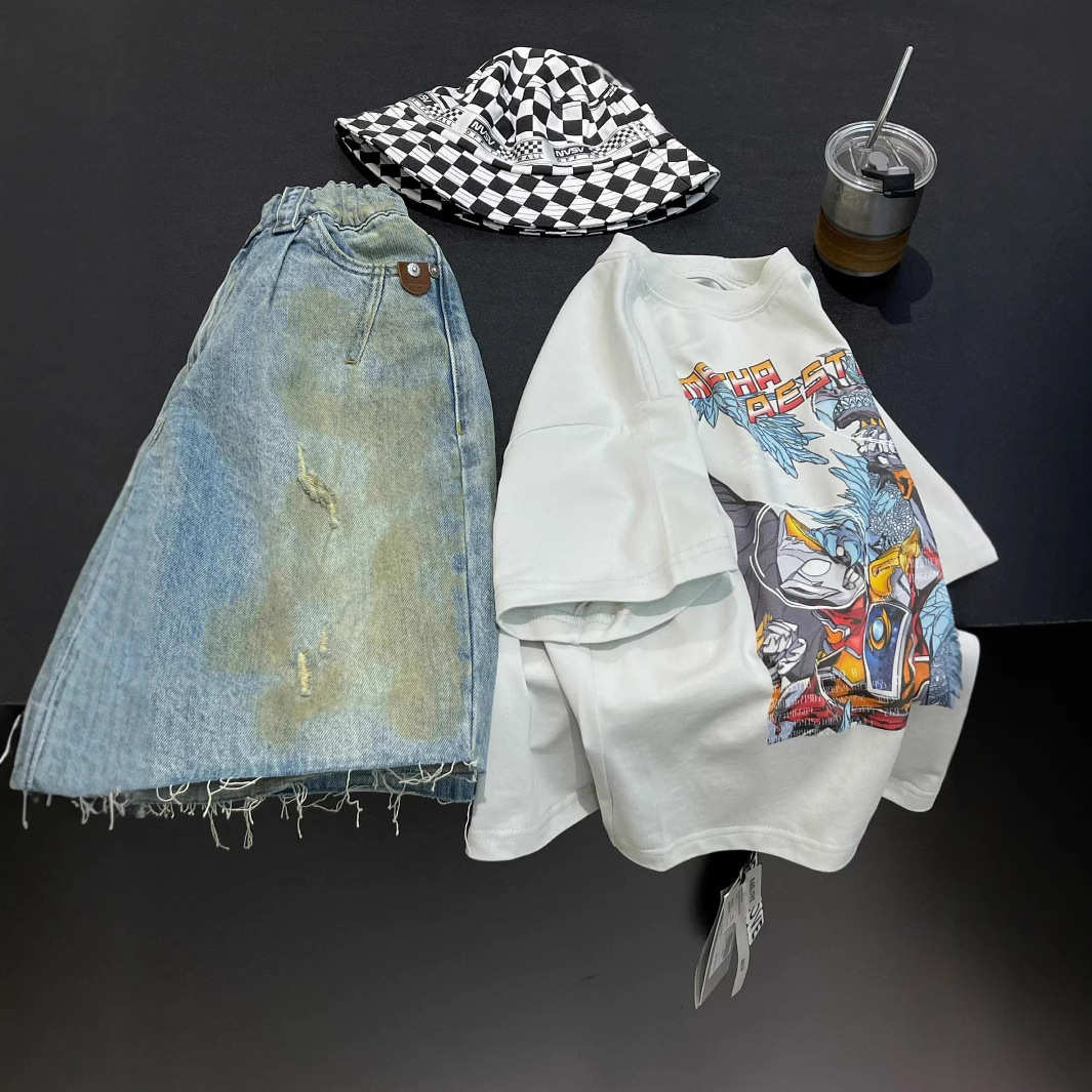 소년 잘 생긴 만화 인쇄 탑 한 팬 차오 2025 새로운 어린이 반팔 티셔츠 소년 캐주얼 반팔 여름스토어 가기