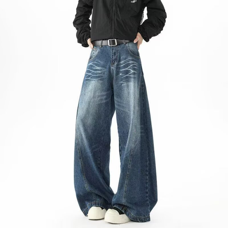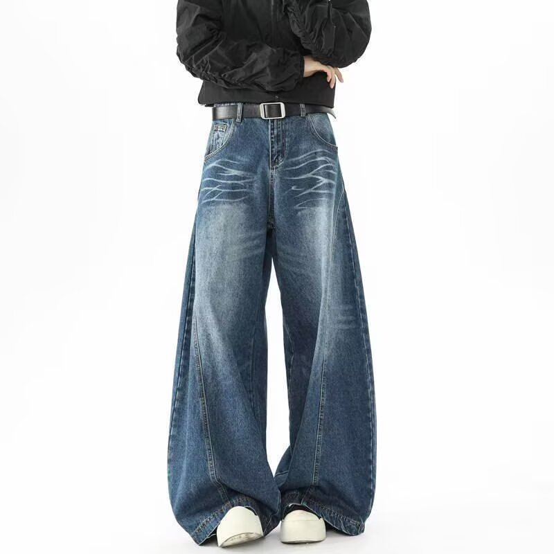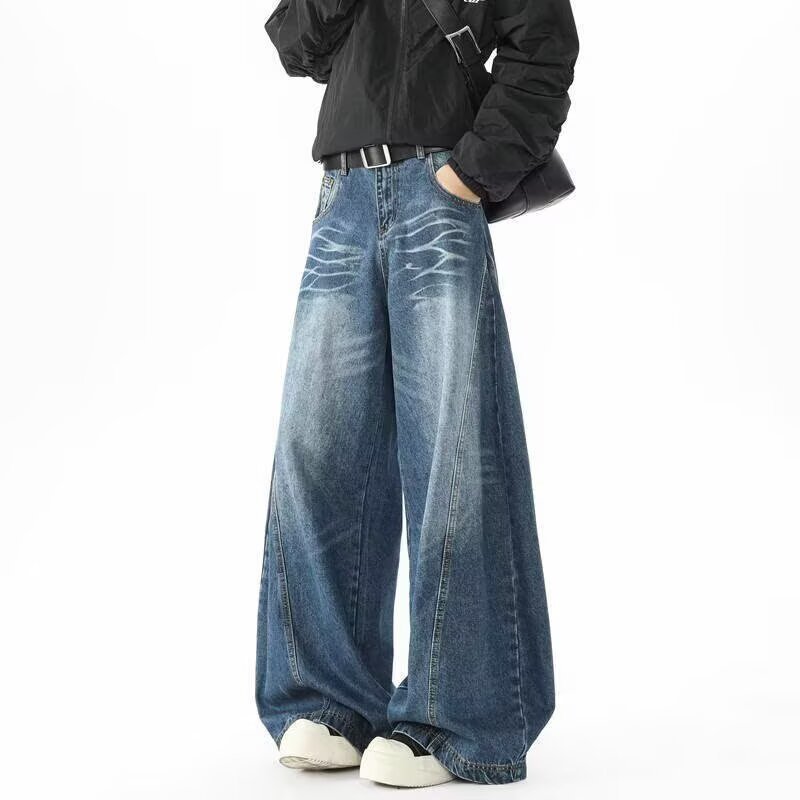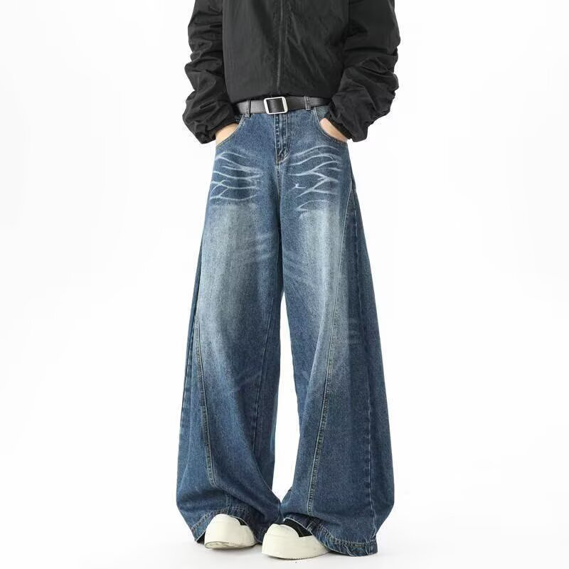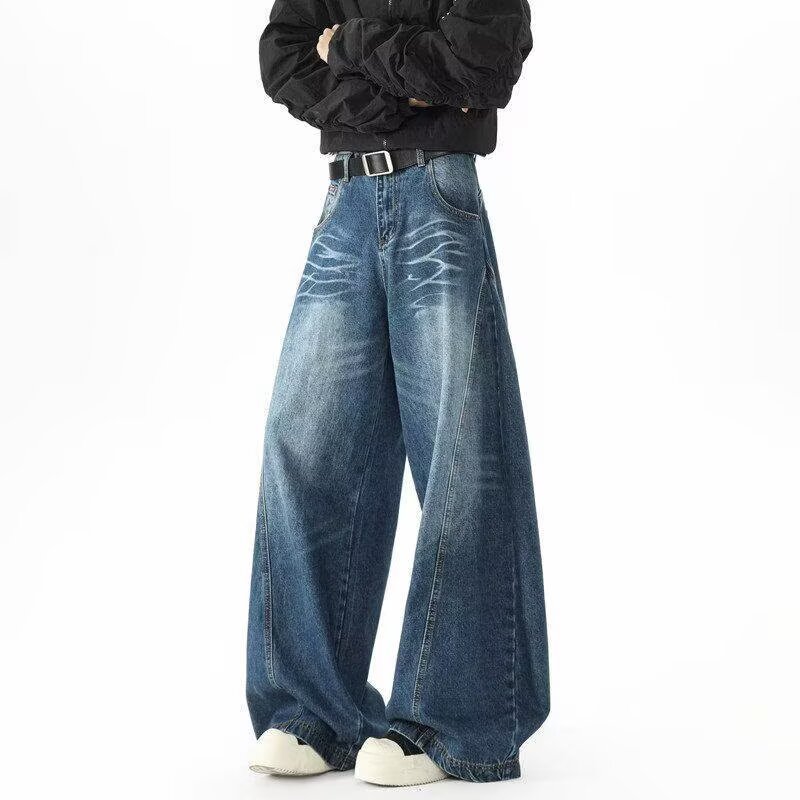 아메리칸 레트로 실루엣 남성용 대형 청바지 워싱 골판지 스트리트 실루엣 디스트레스드 레이지 바닥 길이 와이드 팬츠스토어 가기