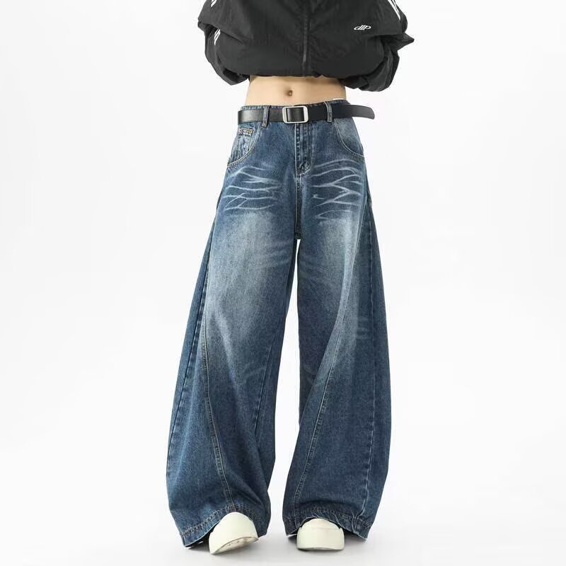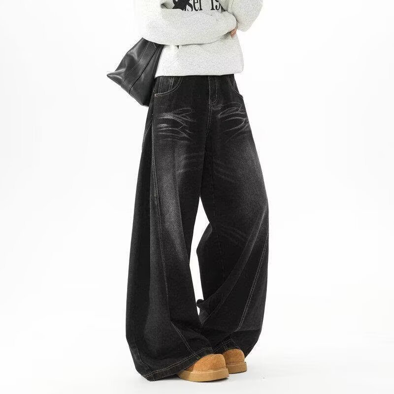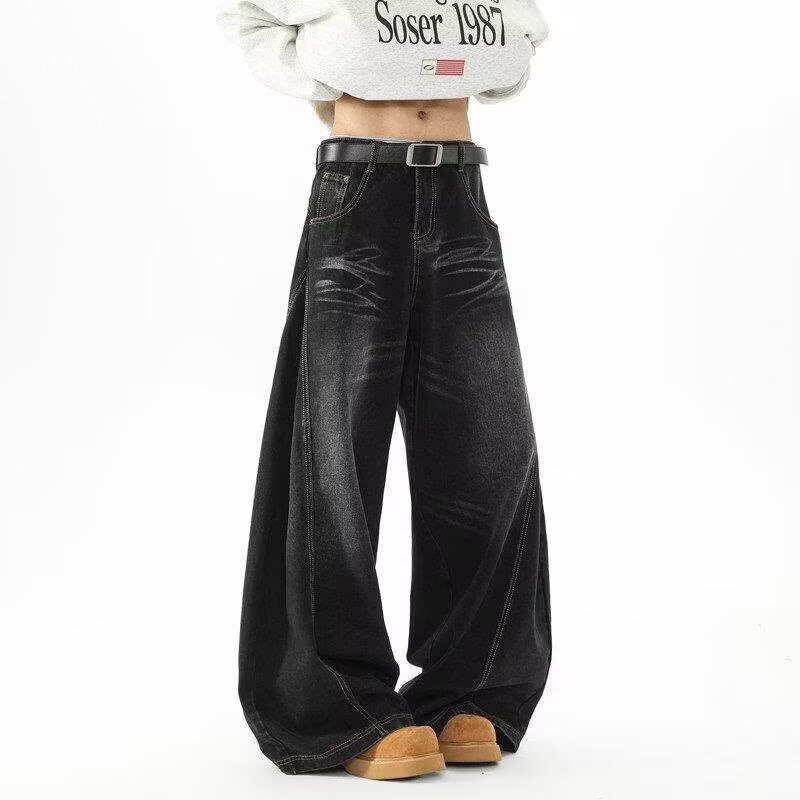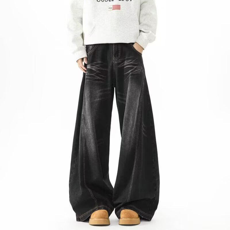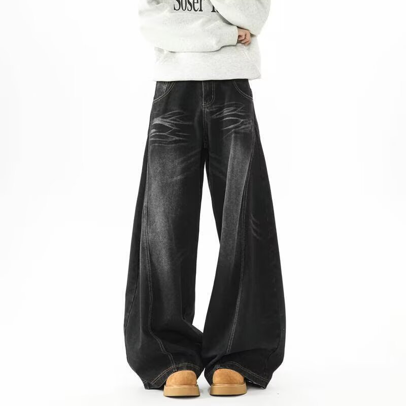 아메리칸 레트로 실루엣 남성용 대형 청바지 워싱 골판지 스트리트 실루엣 디스트레스드 레이지 바닥 길이 와이드 팬츠스토어 가기