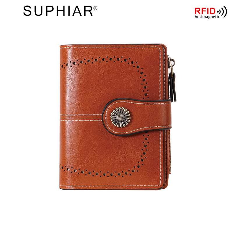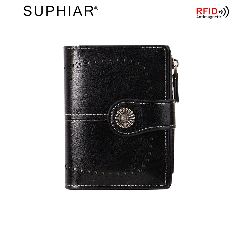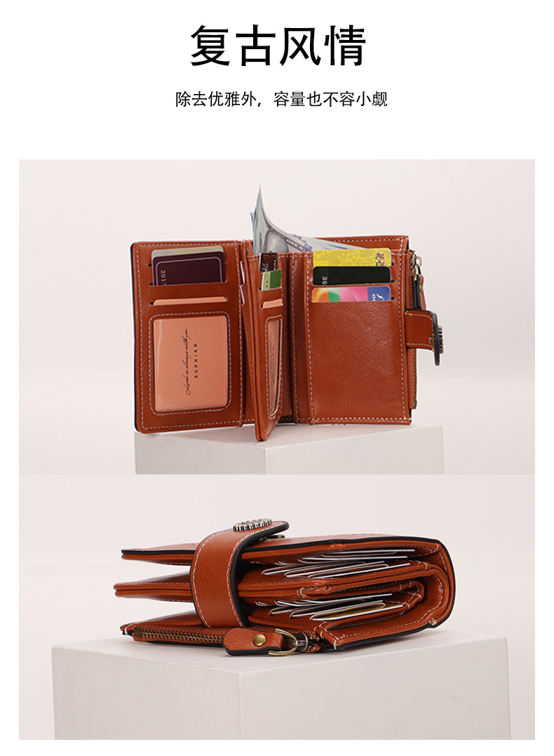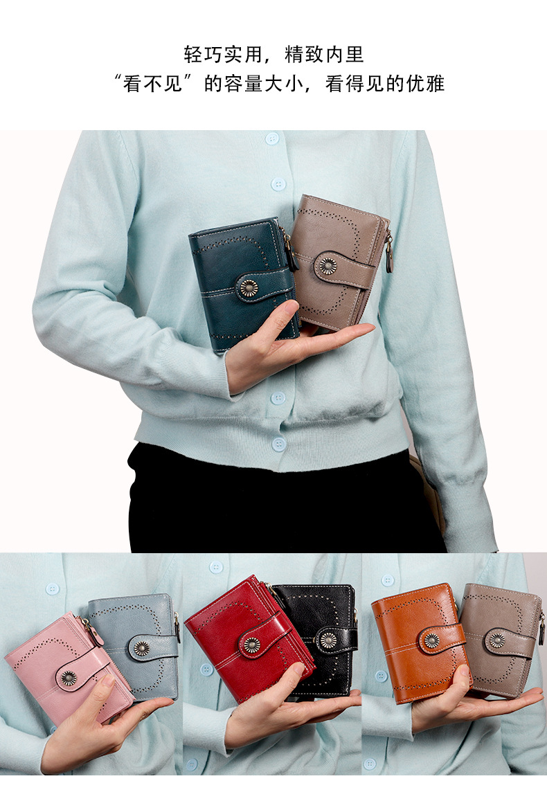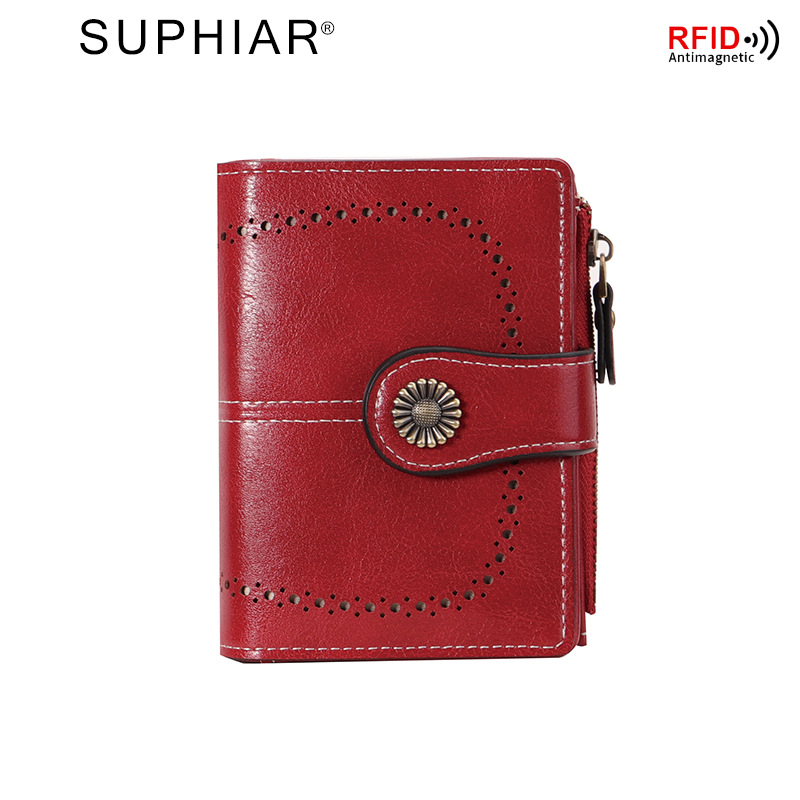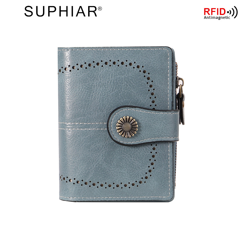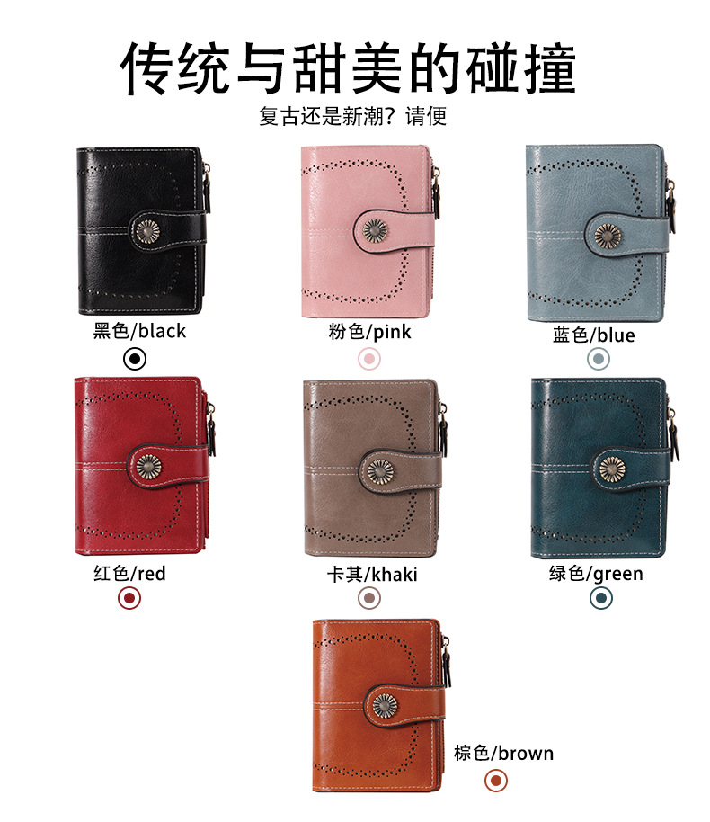 국경을 넘는 인기 RFID 도난 방지 지퍼 지갑, 다중 카드 슬롯, 버클 지갑, 유럽 및 미국 패션 짧은 스타일 여성 지갑