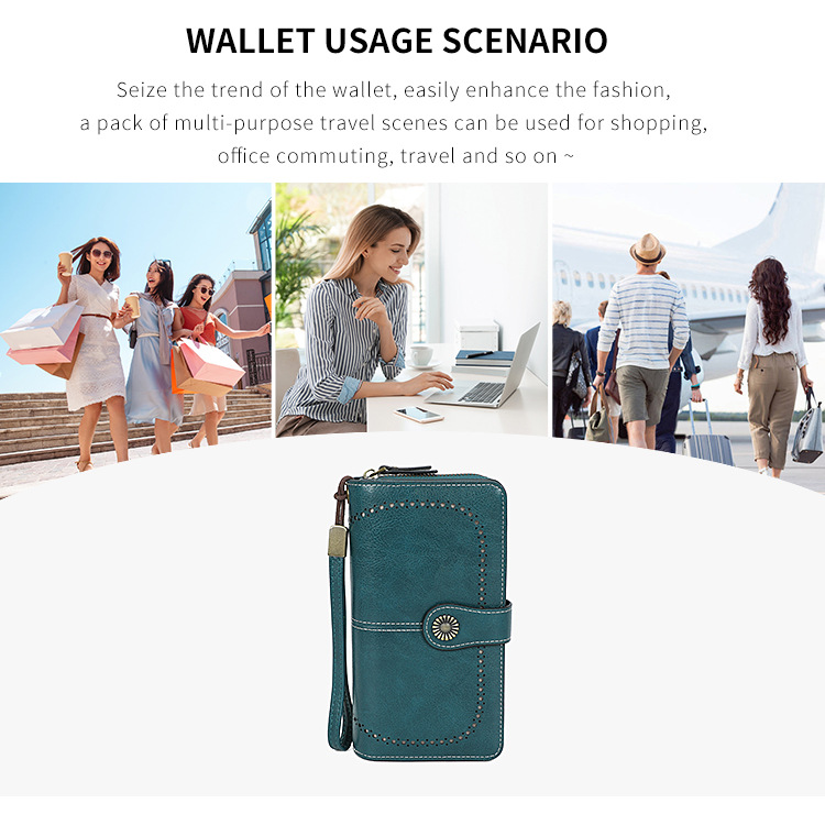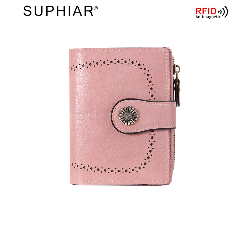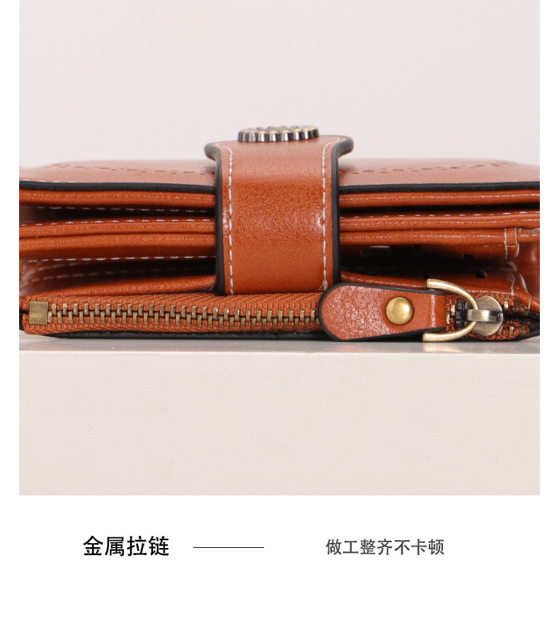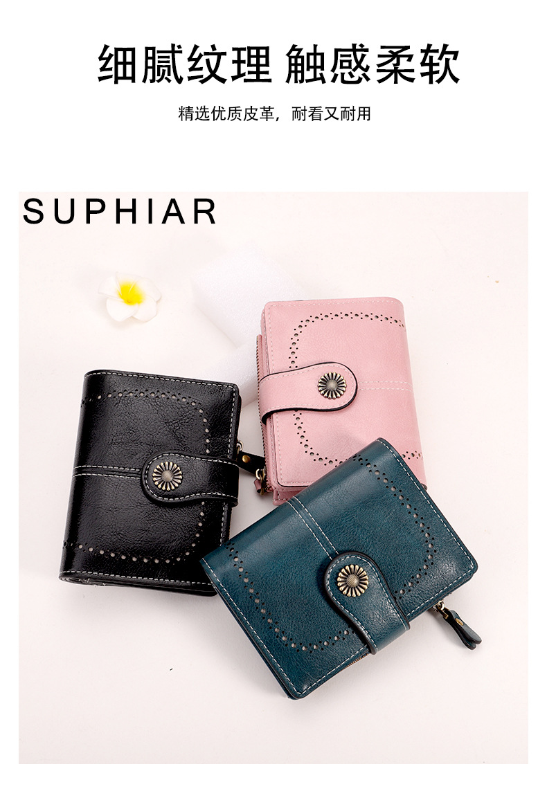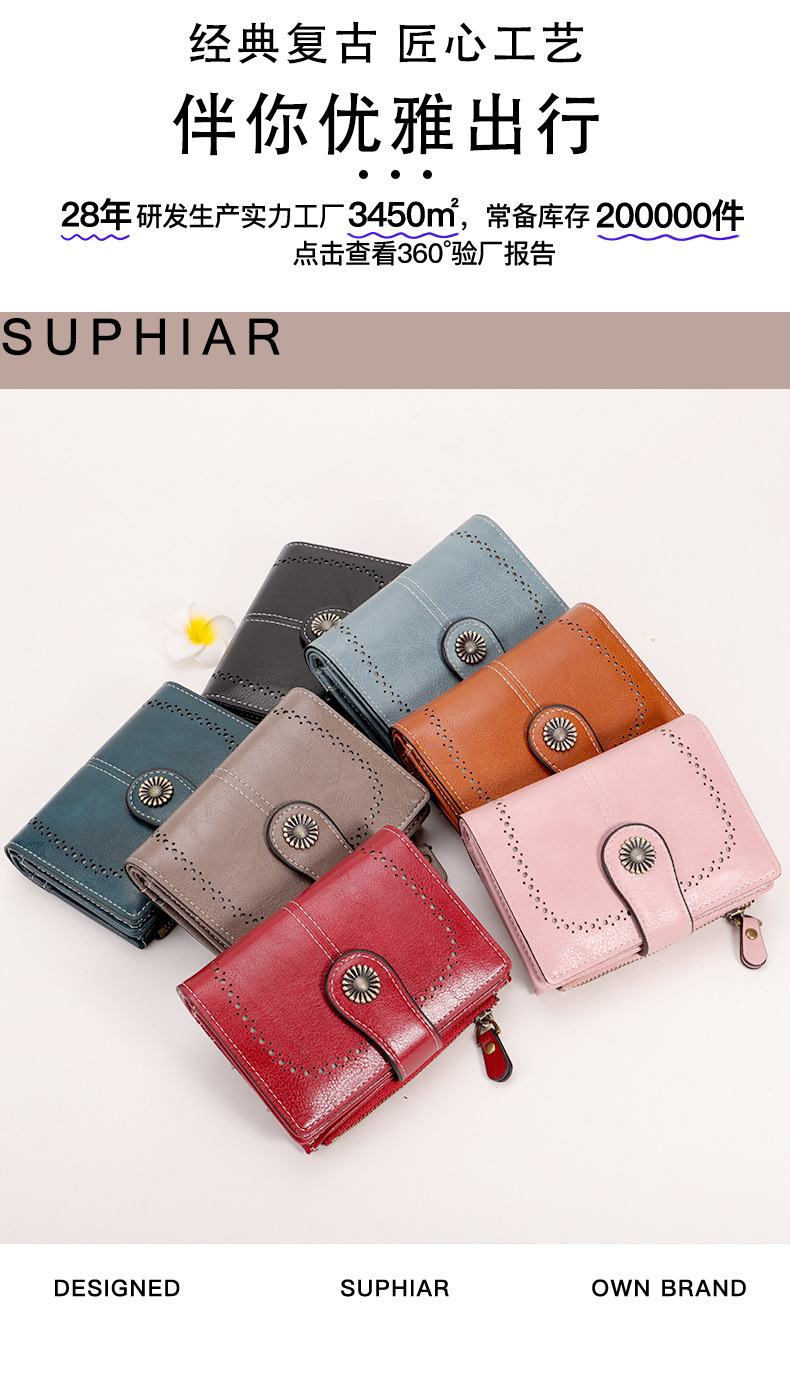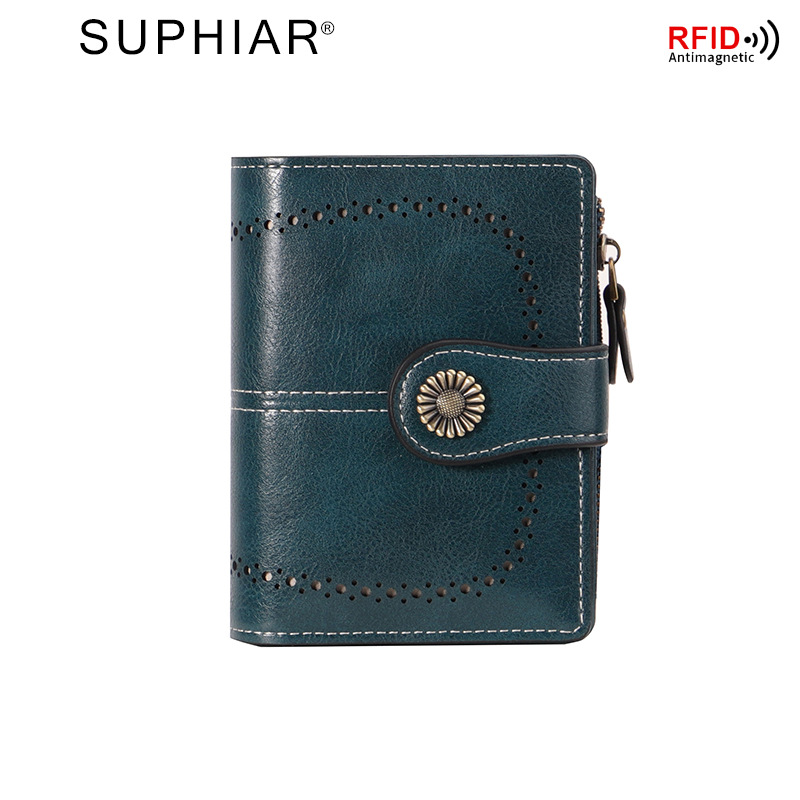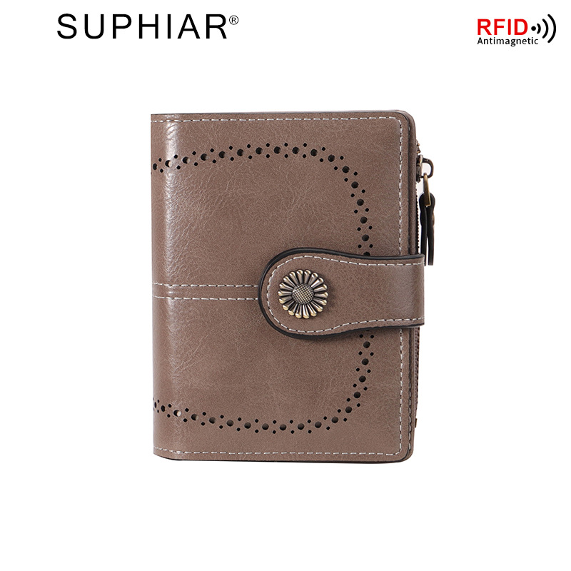 국경을 넘는 인기 RFID 도난 방지 지퍼 지갑, 다중 카드 슬롯, 버클 지갑, 유럽 및 미국 패션 짧은 스타일 여성 지갑
