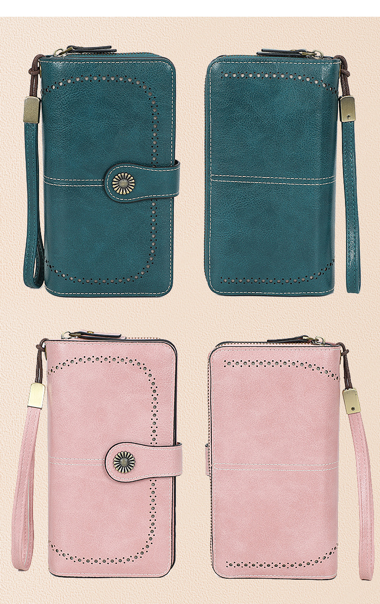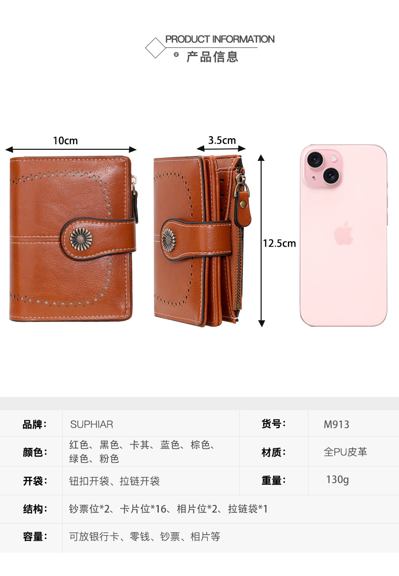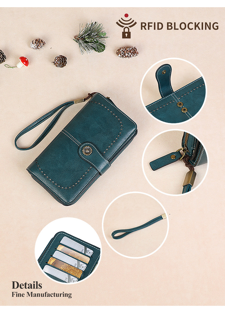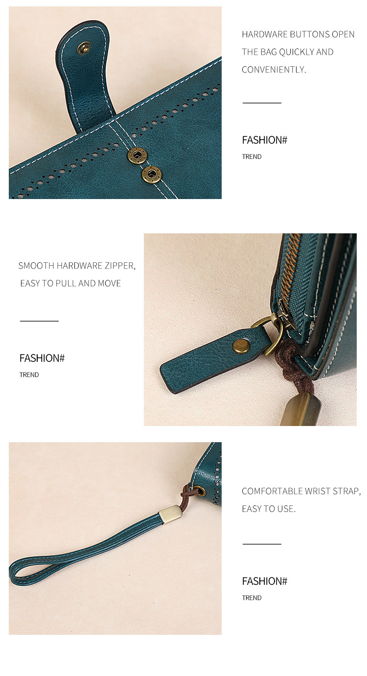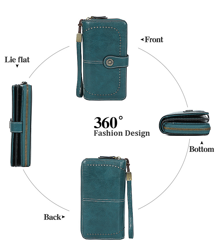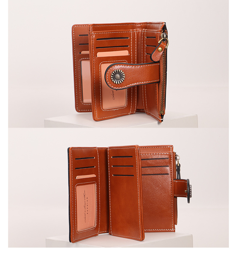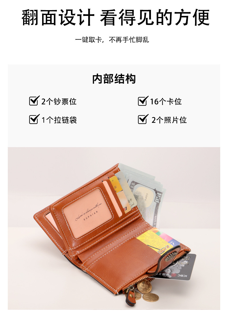 국경을 넘는 인기 RFID 도난 방지 지퍼 지갑, 다중 카드 슬롯, 버클 지갑, 유럽 및 미국 패션 짧은 스타일 여성 지갑