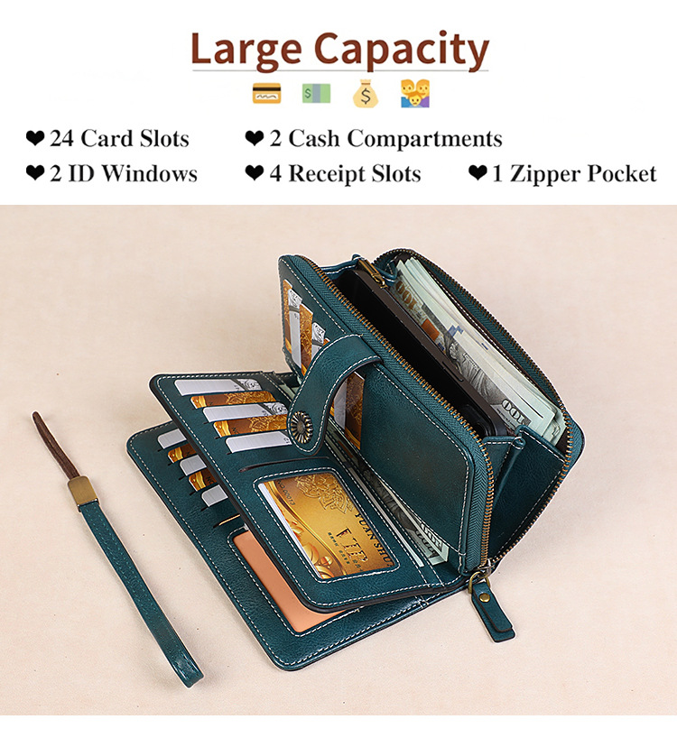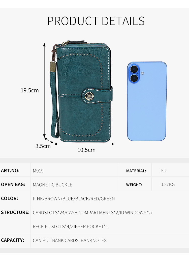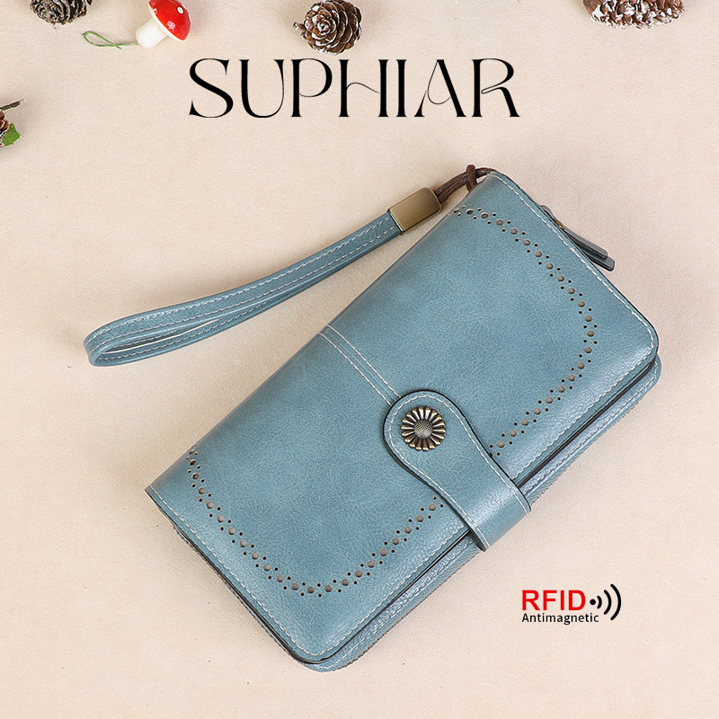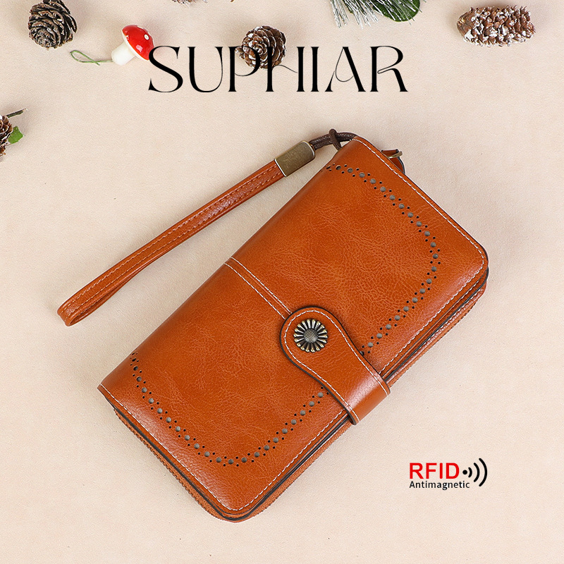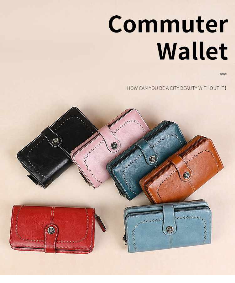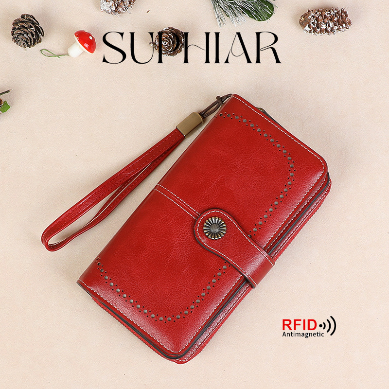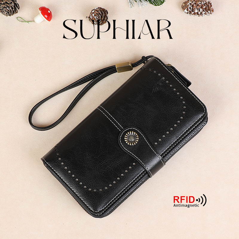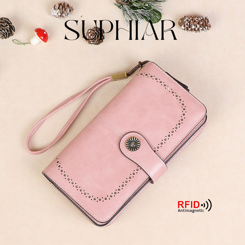 국경을 넘는 인기 RFID 도난 방지 지퍼 지갑, 다중 카드 슬롯, 버클 지갑, 유럽 및 미국 패션 짧은 스타일 여성 지갑