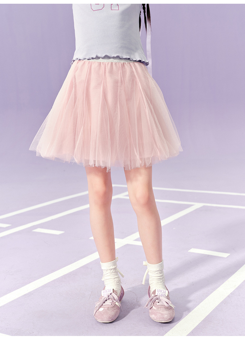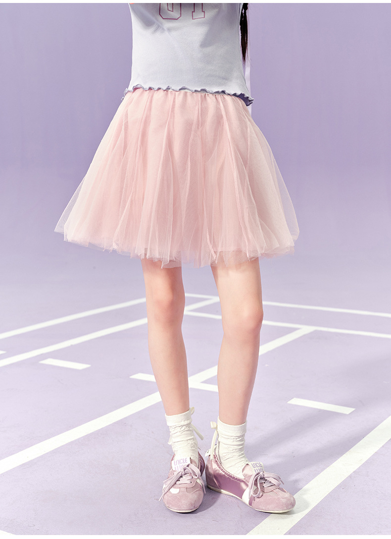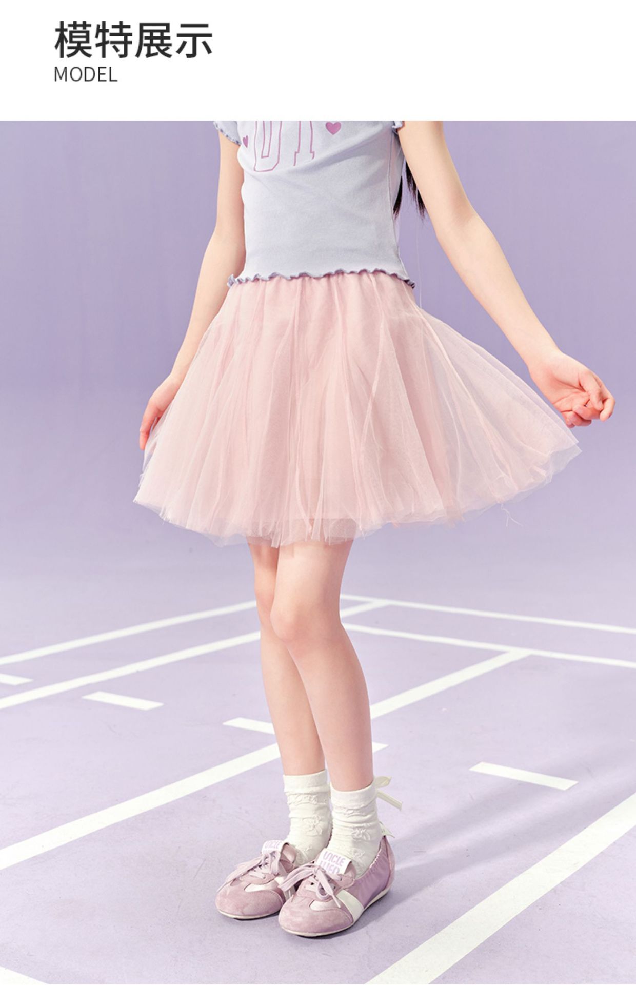 타오딩 [핑크 클라우드] 여아 스커트 여름 신작 메쉬 퍼프 스커트 노출 방지 스포츠 스커트 트렌디