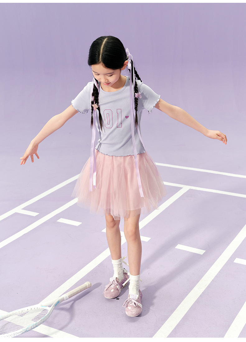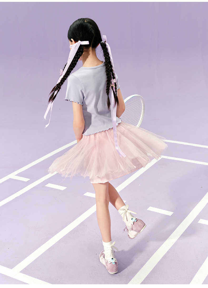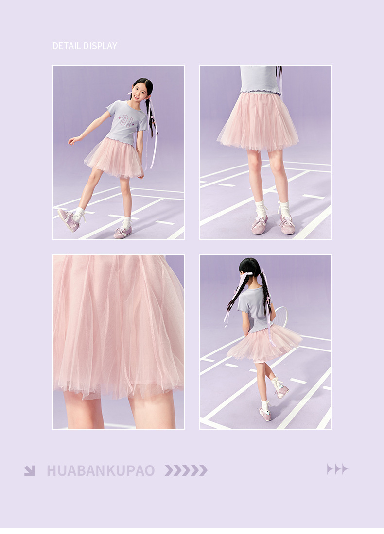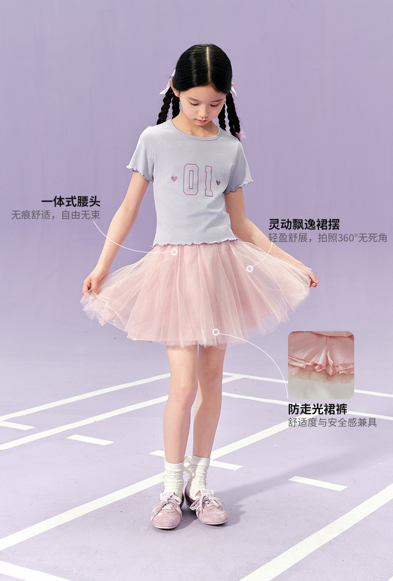타오딩 [핑크 클라우드] 여아 스커트 여름 신작 메쉬 퍼프 스커트 노출 방지 스포츠 스커트 트렌디