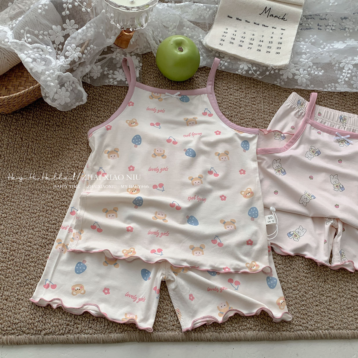 소프트! 소녀 잠옷 여름 얇은 어린이 슬링 반바지 조끼 최고 바지 2 피스 홈 의류 세트