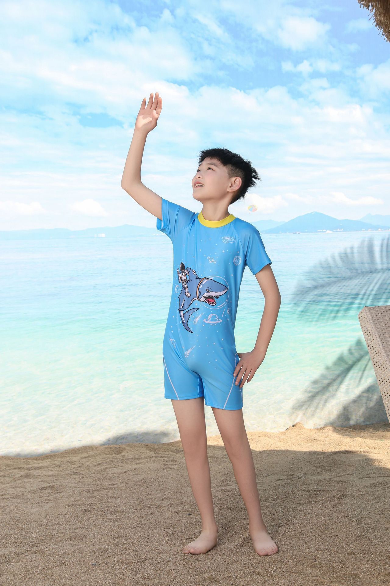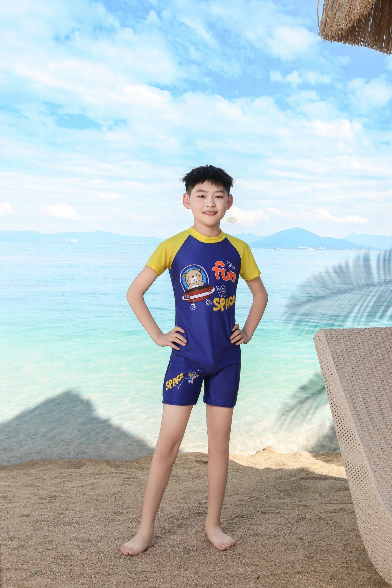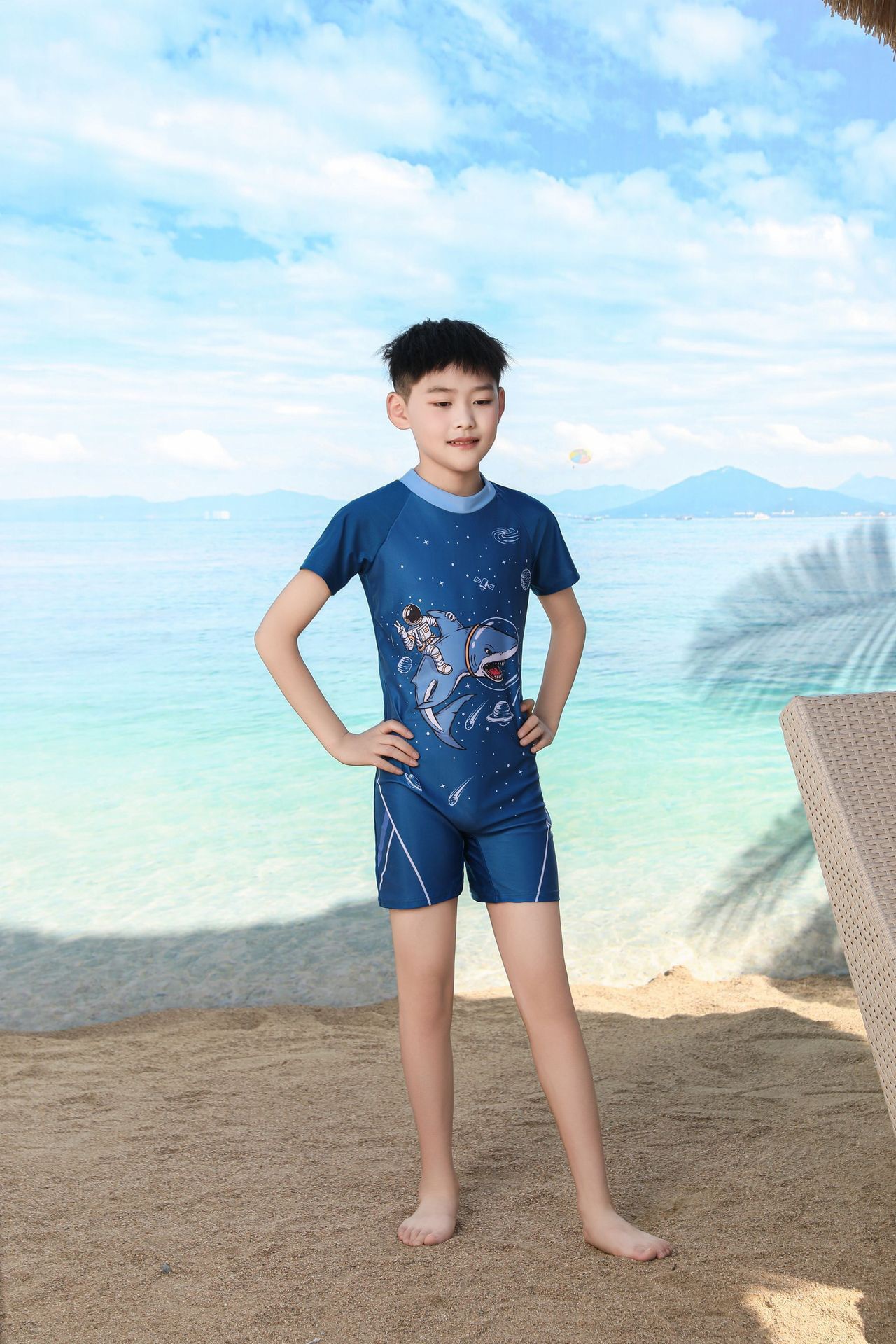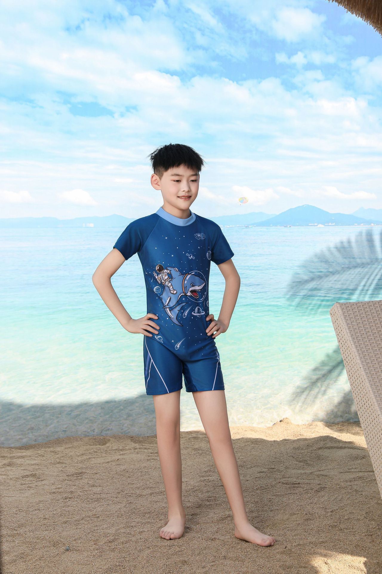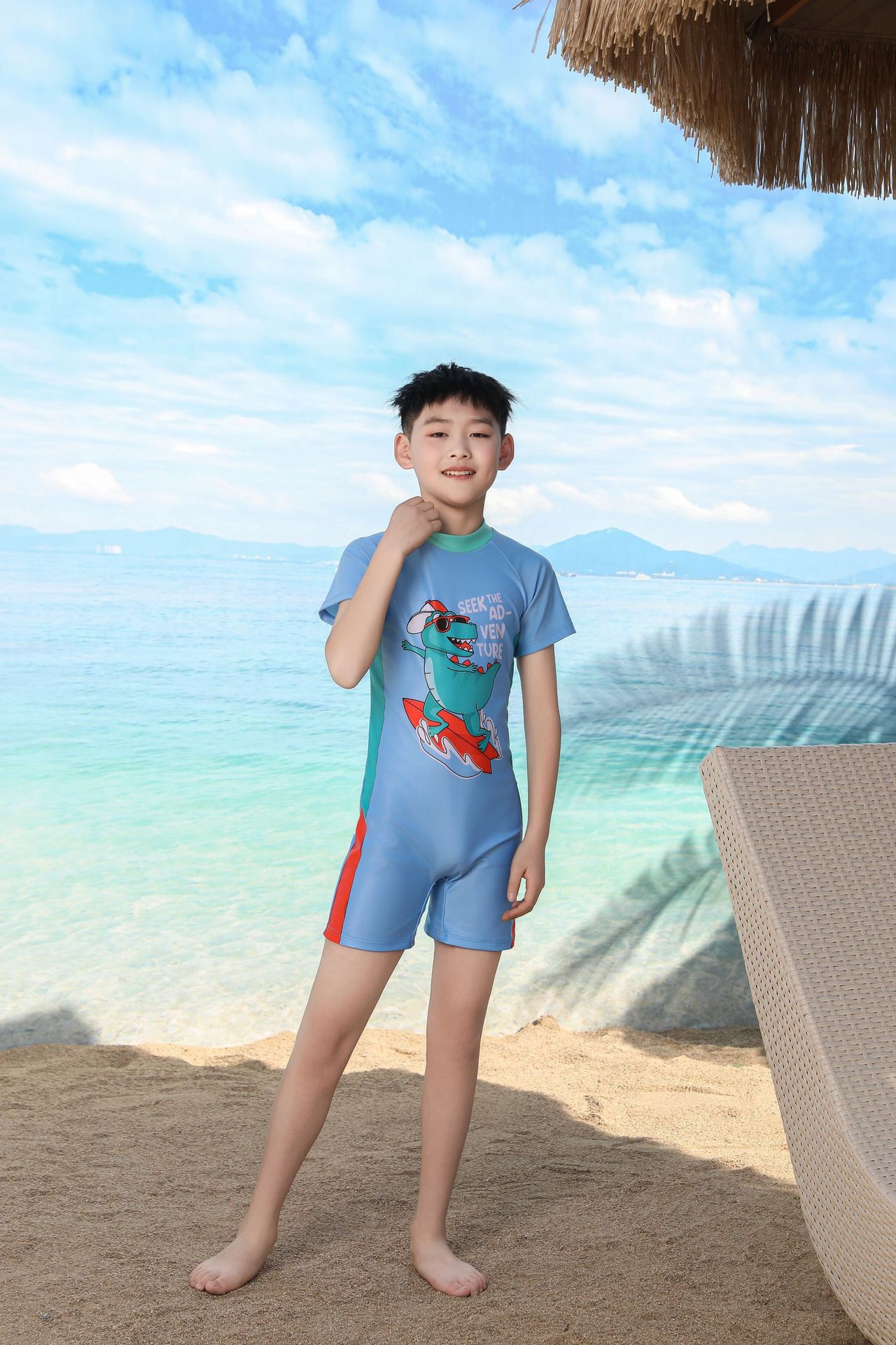 쪼개지는 어린이 수영복 소년의 원피스 반팔 빠른 건조 수영복 큰 소년의 수영 트렁크 온천 수영복 도매
