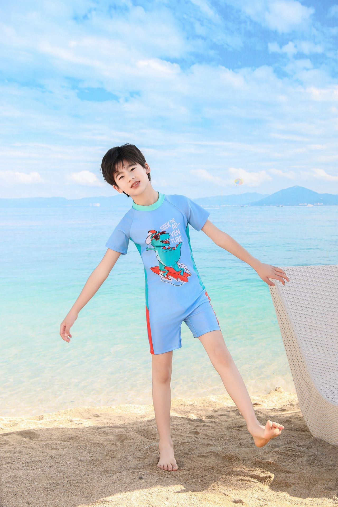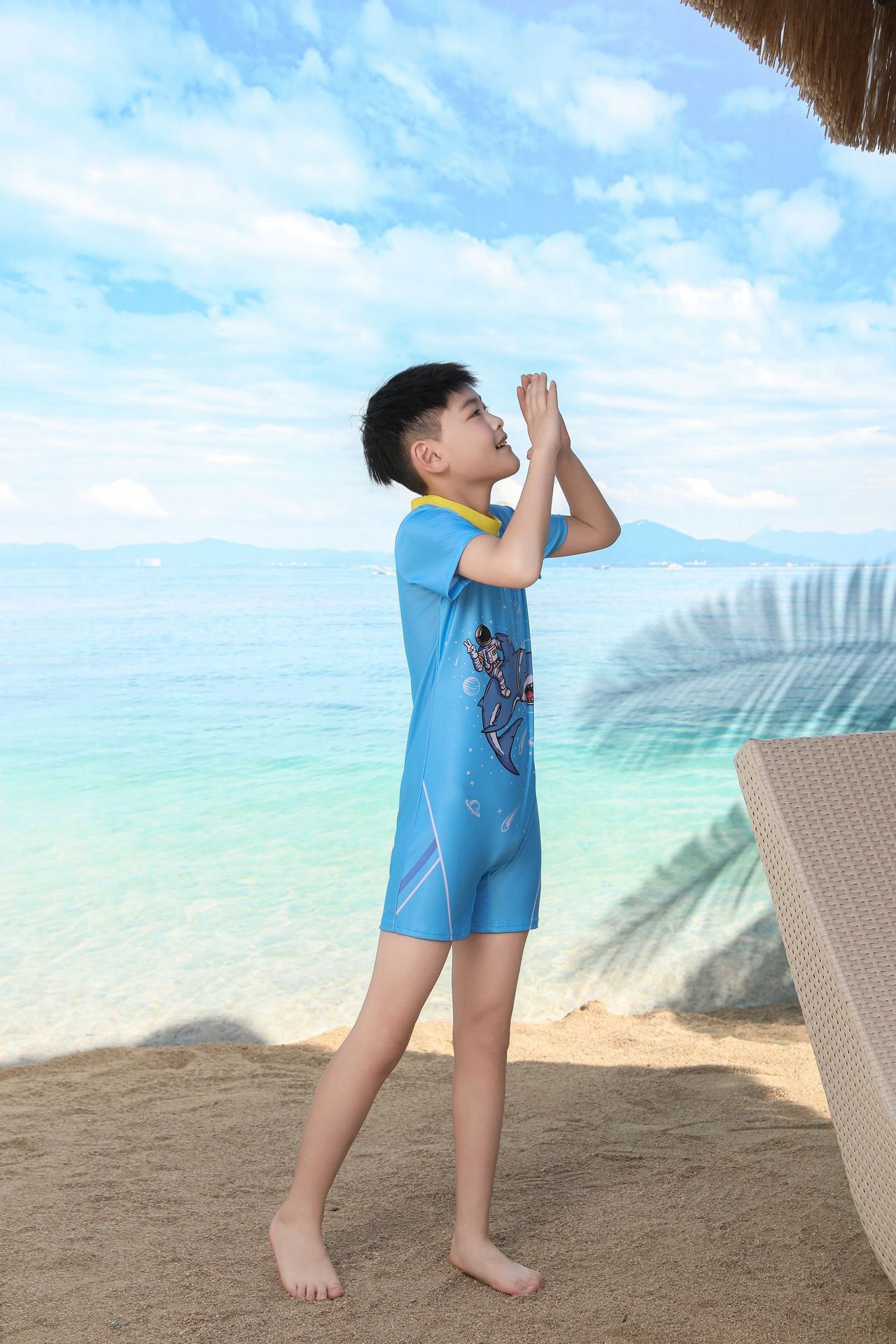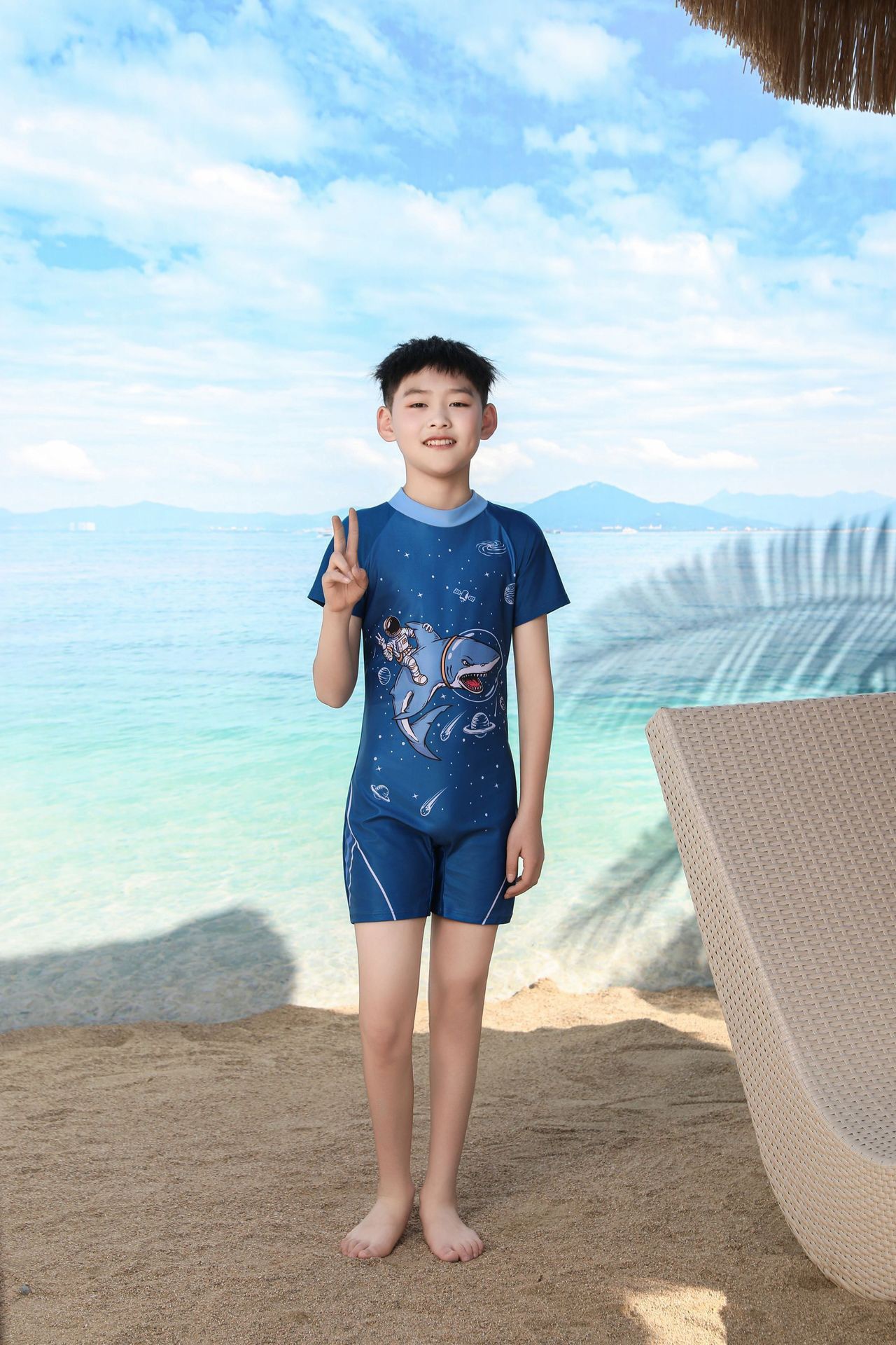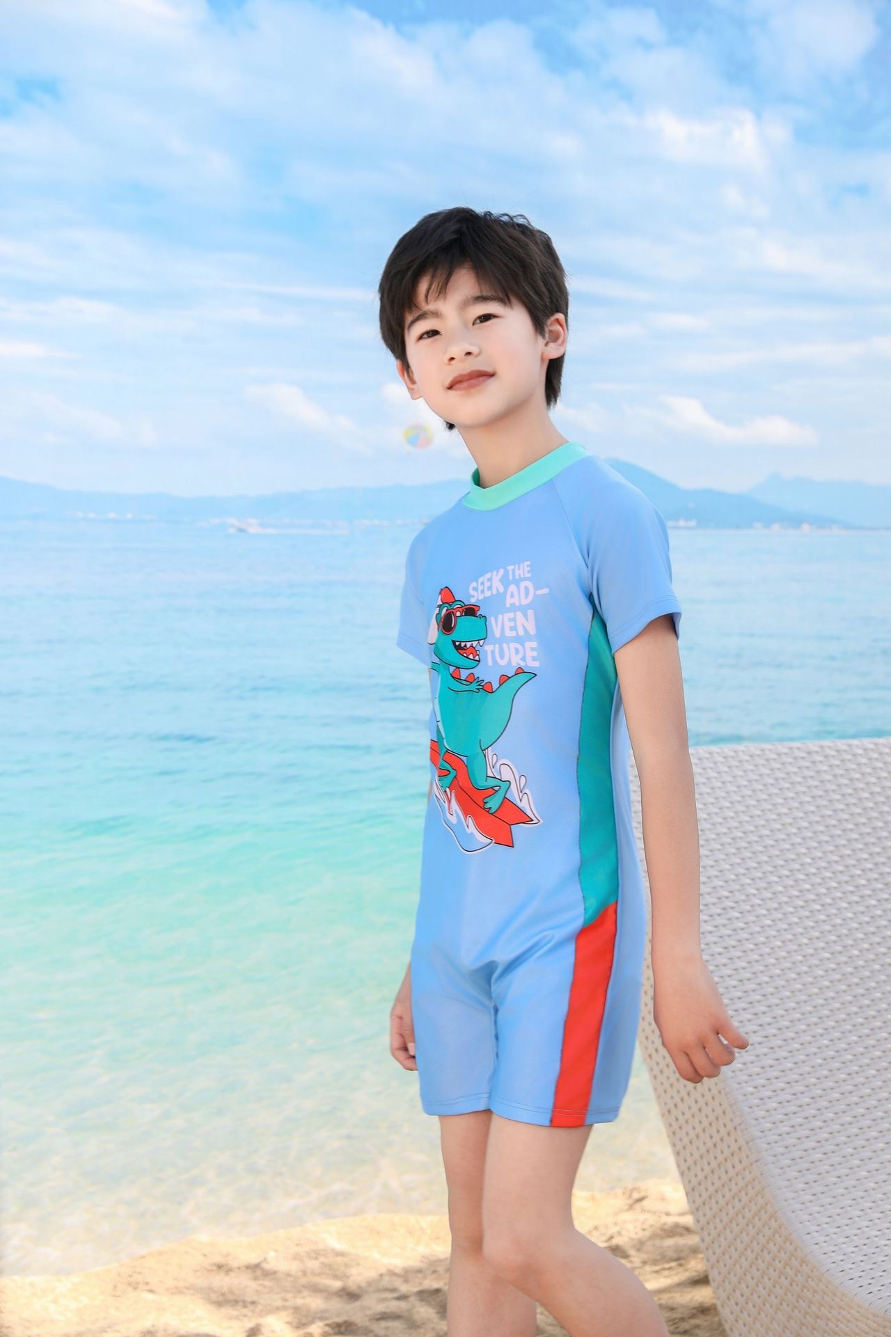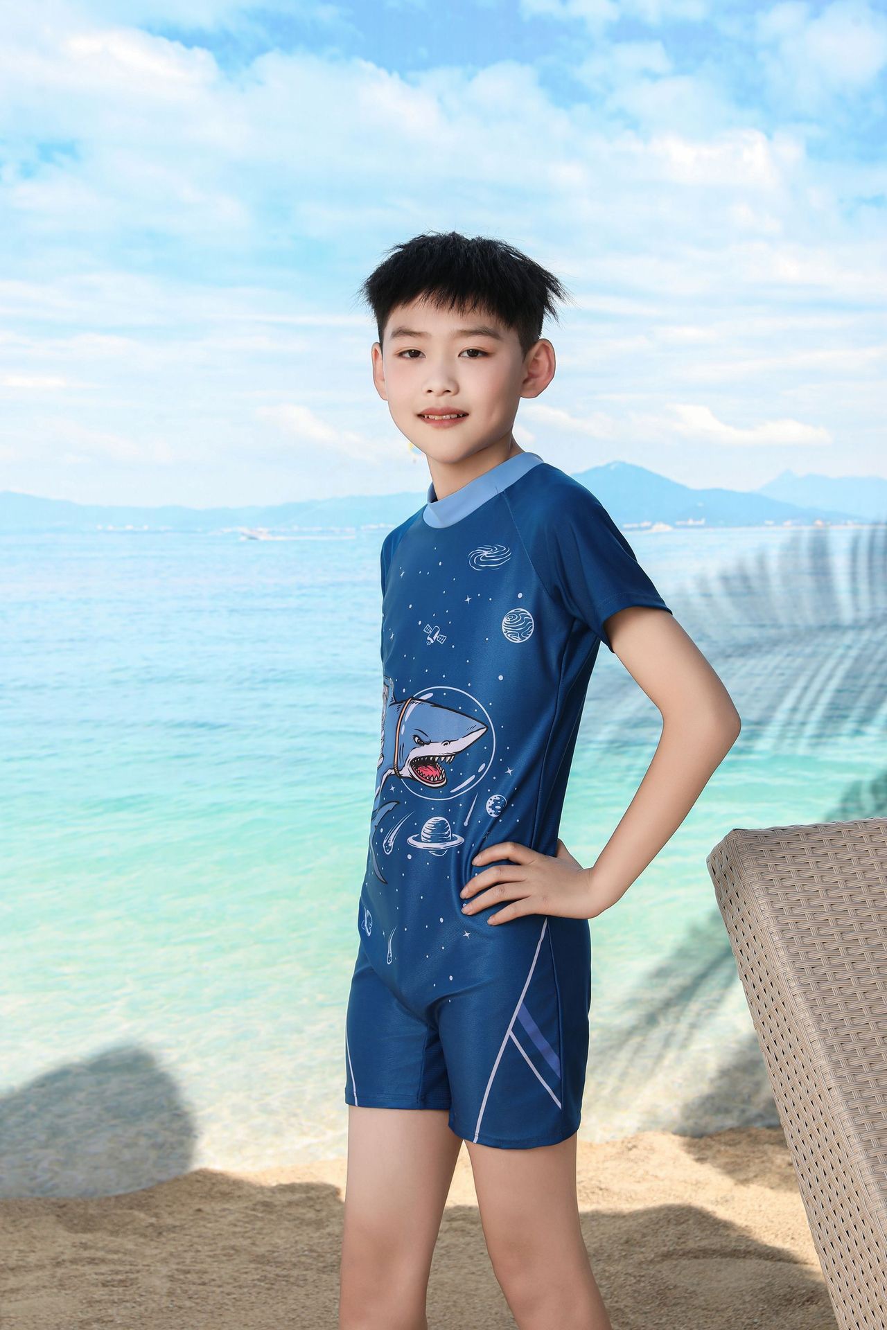 쪼개지는 어린이 수영복 소년의 원피스 반팔 빠른 건조 수영복 큰 소년의 수영 트렁크 온천 수영복 도매