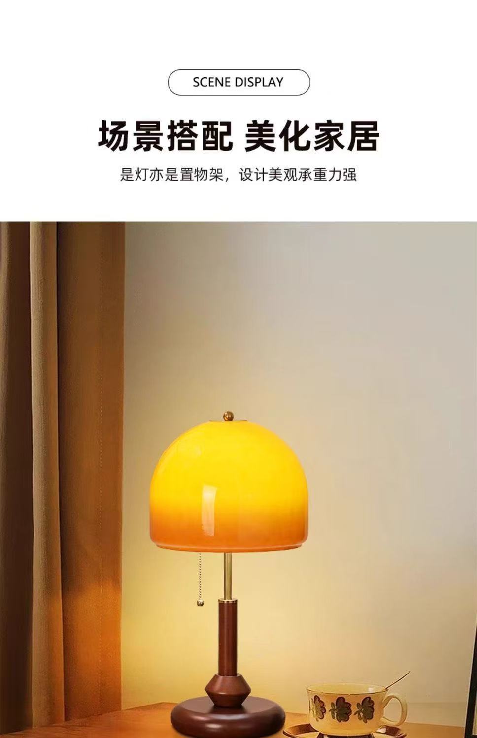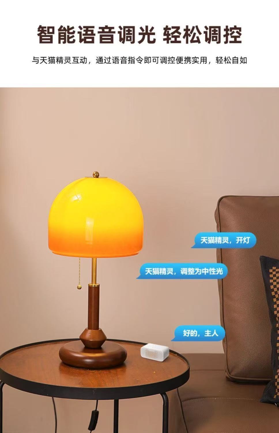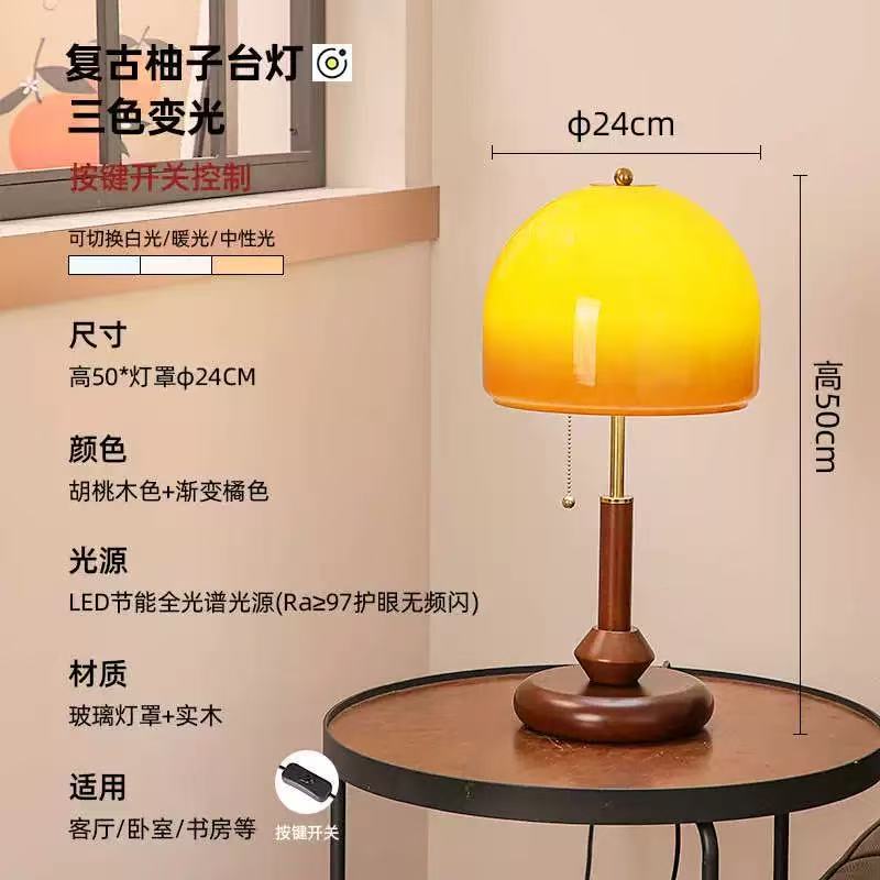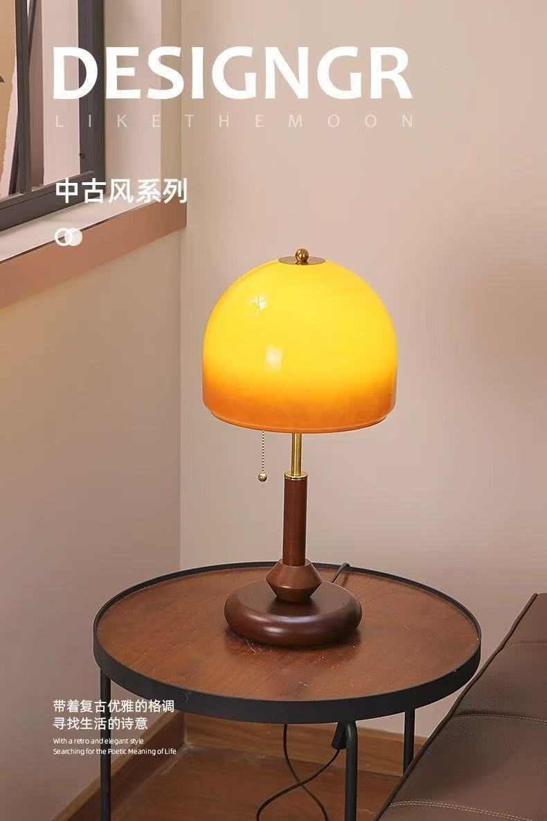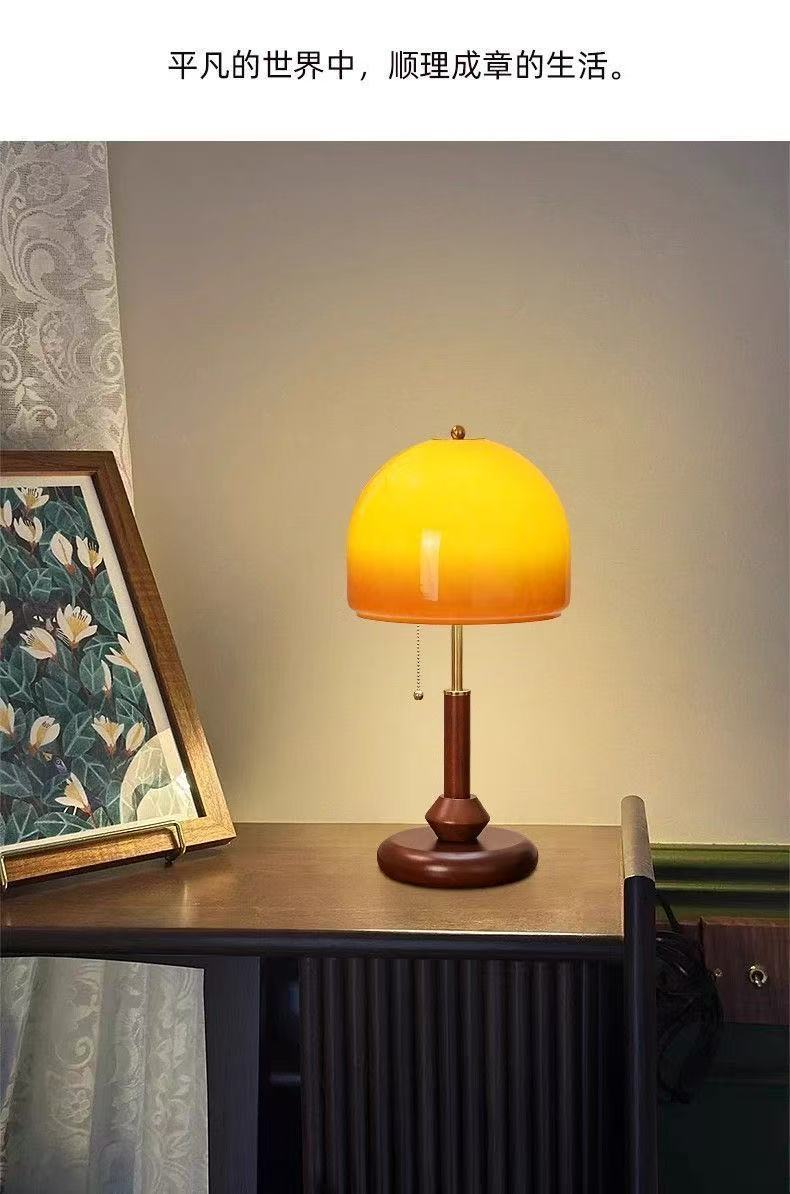 중고 테이블 램프, 복고풍 침대 옆 램프, 호두색 유리 장식, 따뜻한 침실, 고급 창의적 선물 테이블 램프