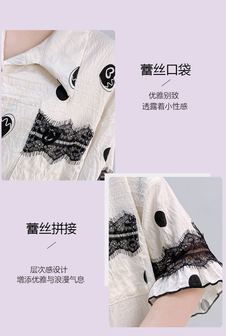 여름 얇은 나이트 드레스 중간 소매 작은 옷깃 카디건 홈 원피스 레이스 포켓 인쇄 서양식 파자마 고정 가슴 패드