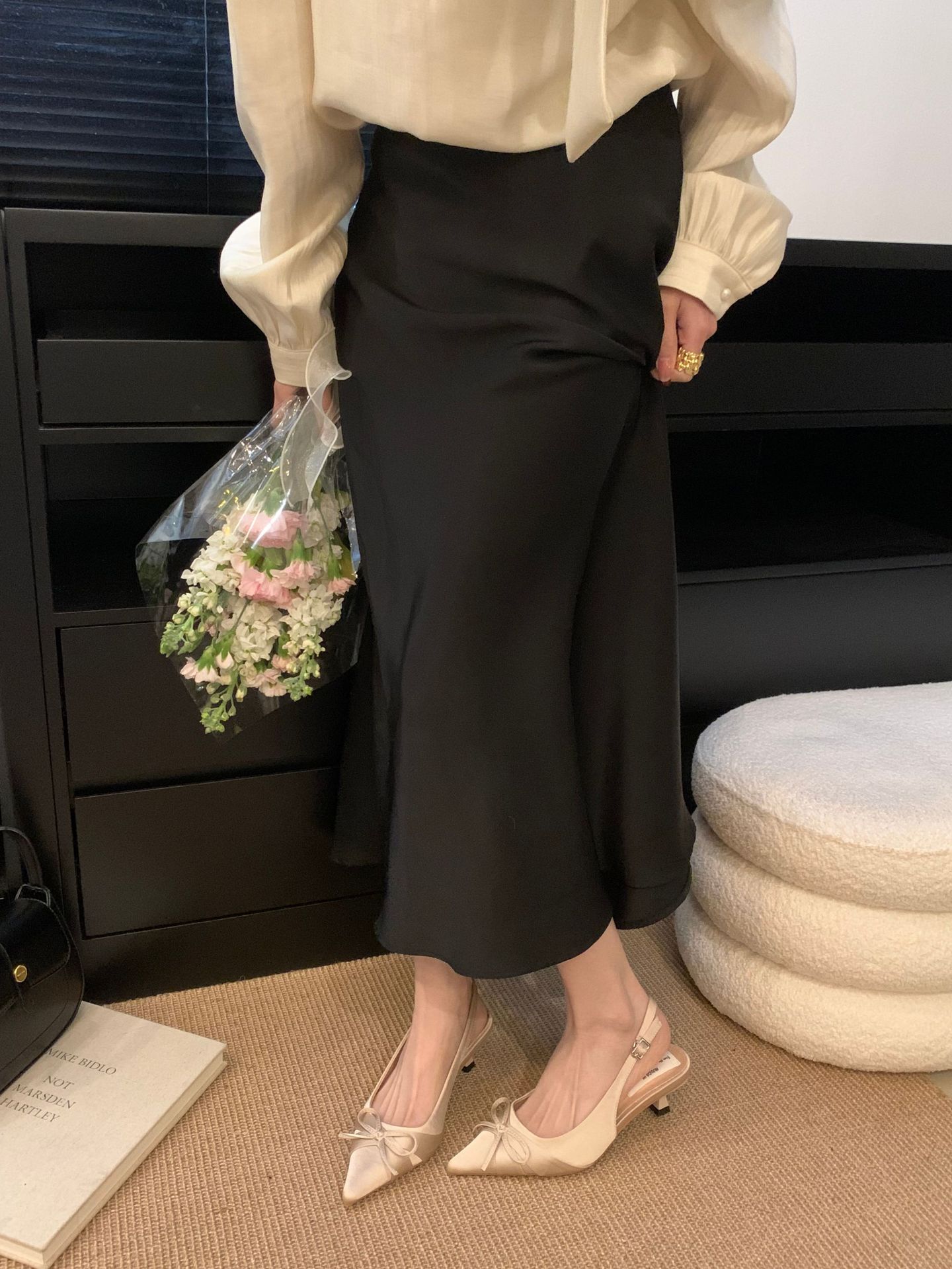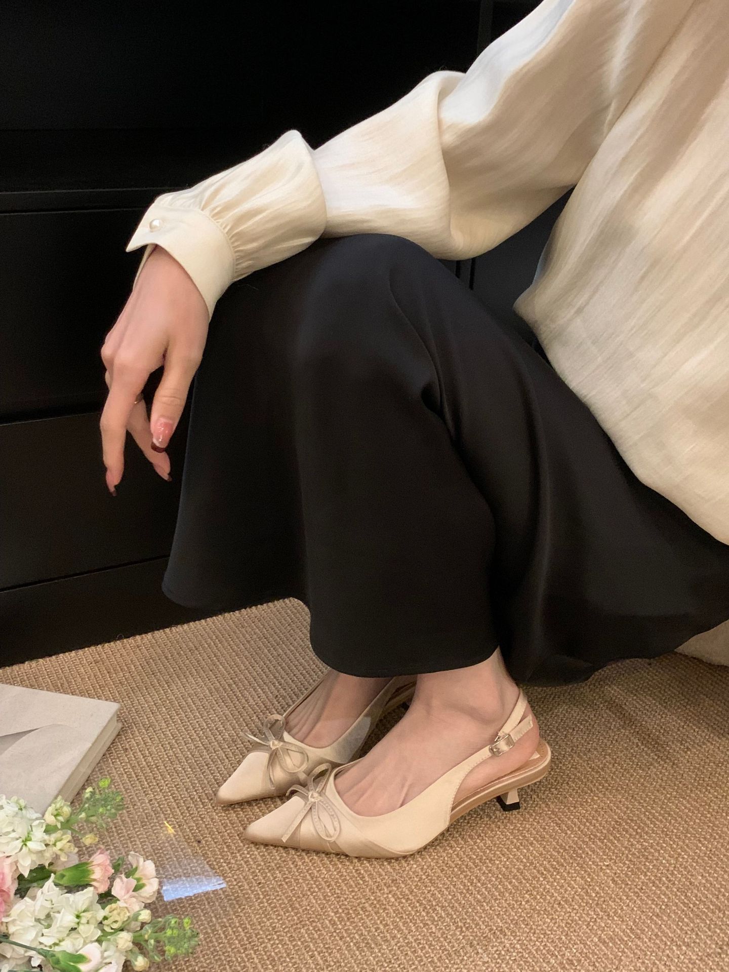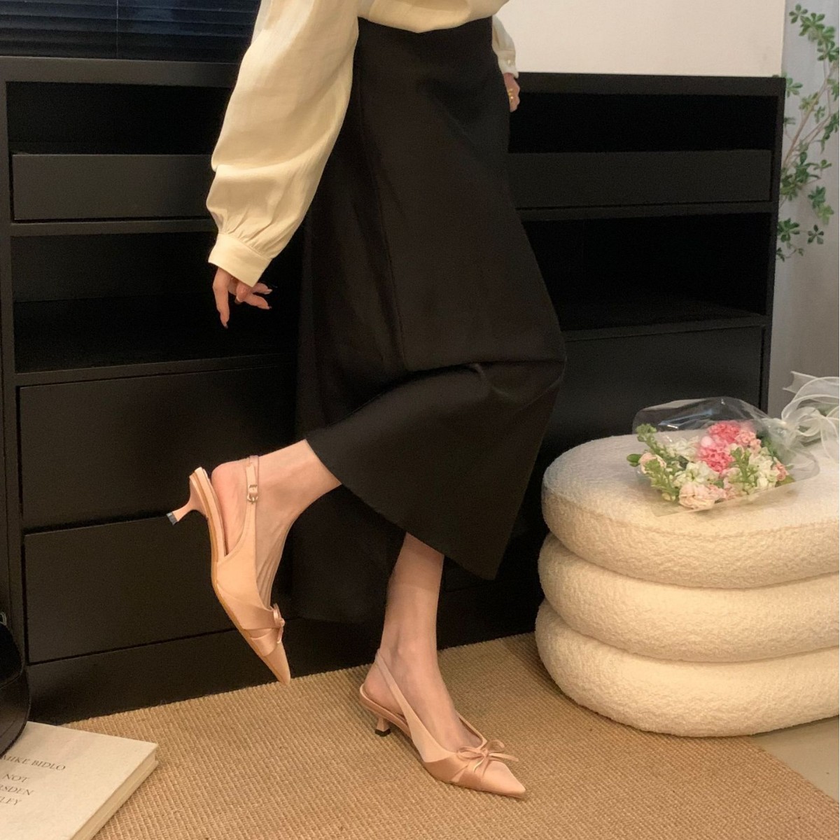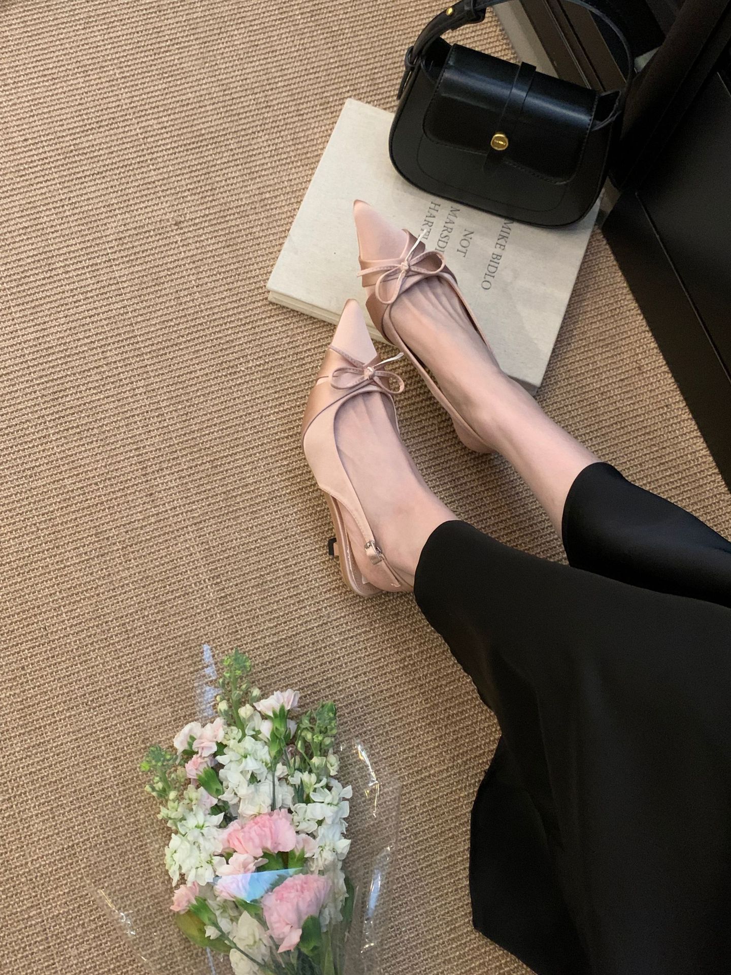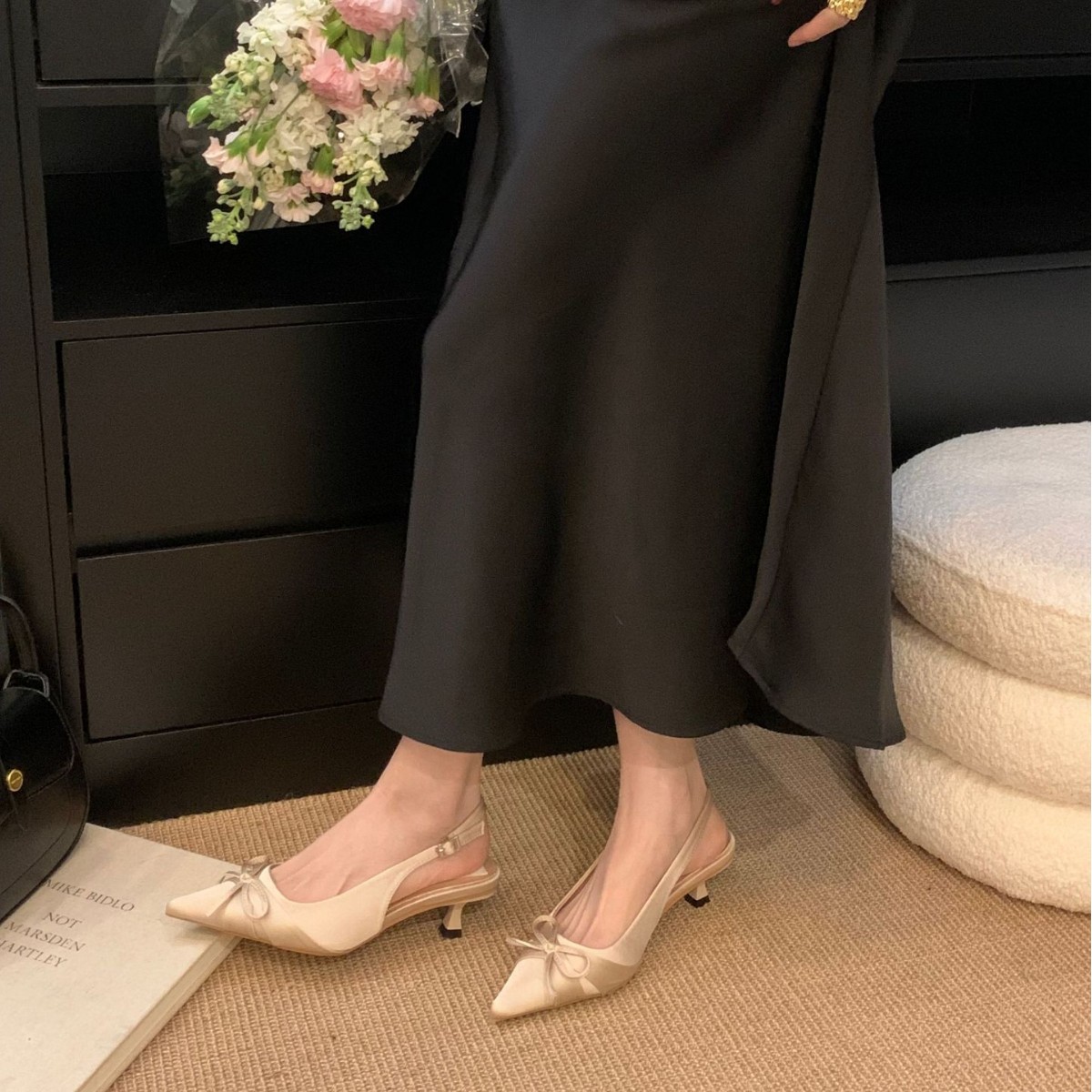 프랑스 스타일 우아한 새틴 토끼 하이힐 여성 2025 년 새 도착 활 뾰족한 스틸레토 힐 사교계 스타일 발가락 샌들