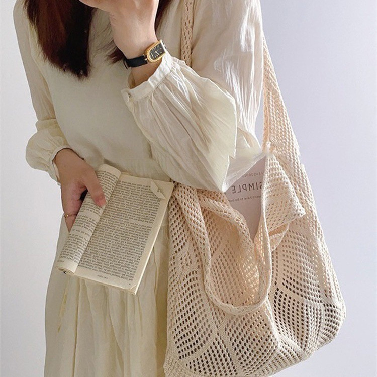 속이 빈 짠 간단한 대용량 쇼핑백 가방 모직 새로운 캐주얼 니트 가방 복고풍 통근 무료 배송