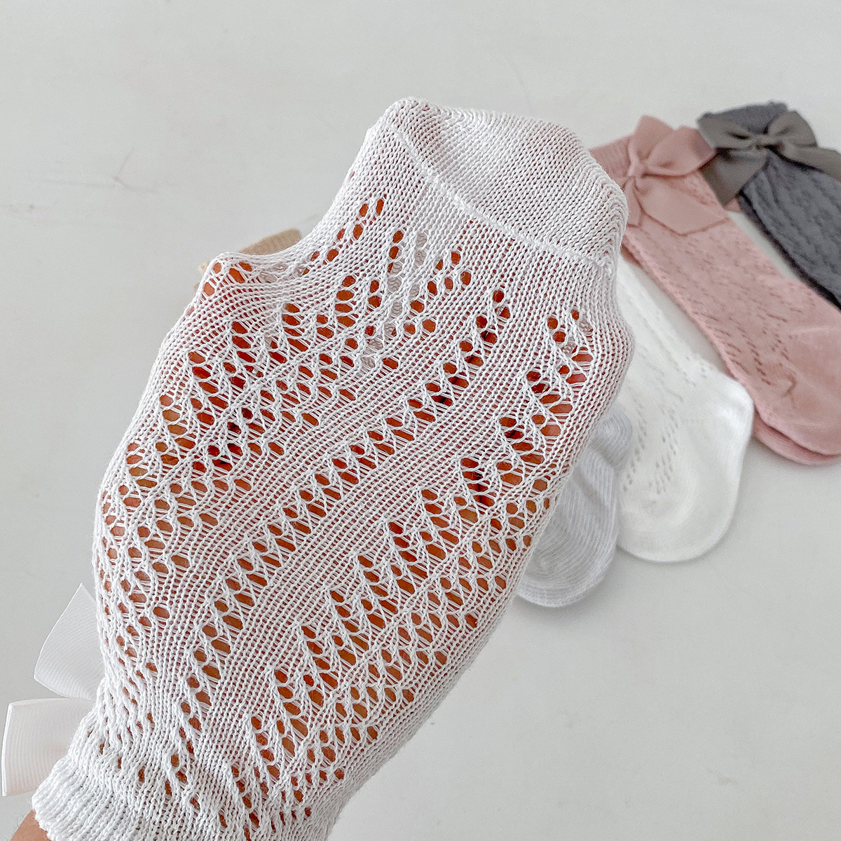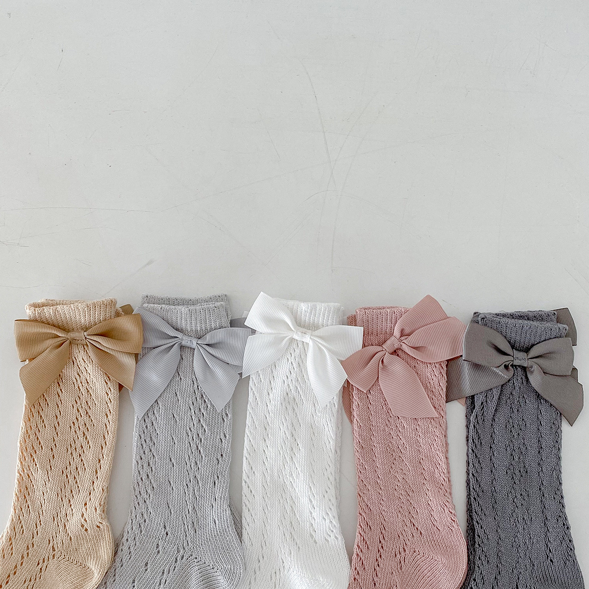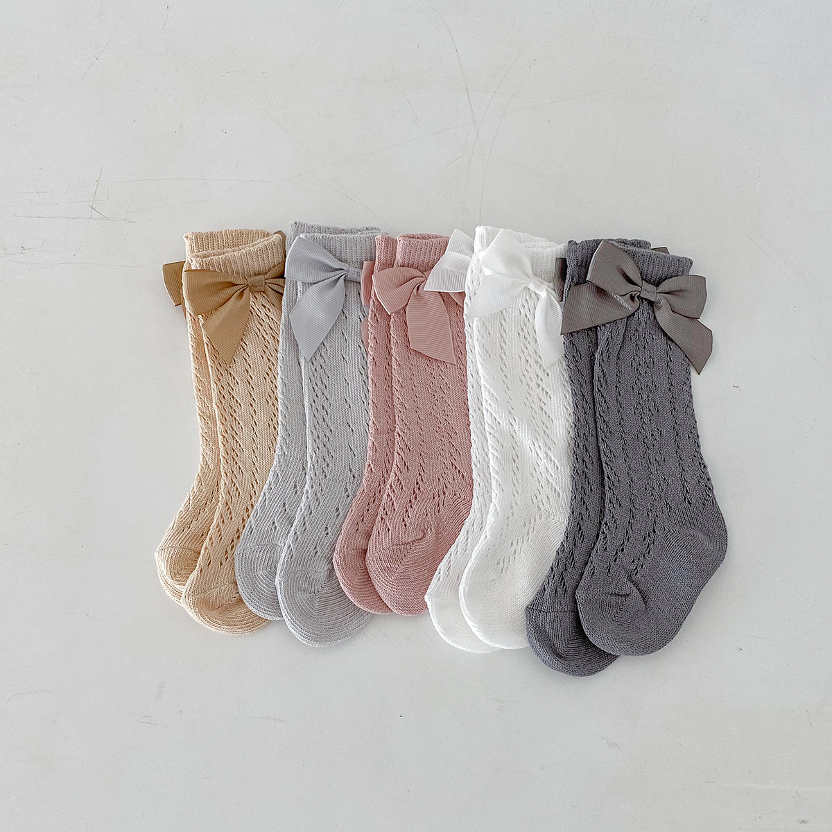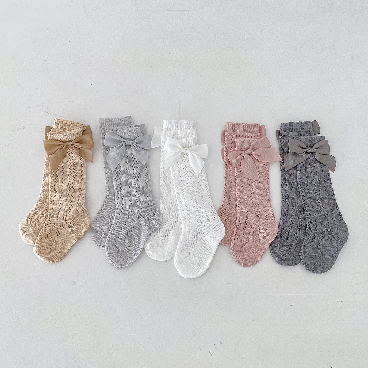 Dianxi 아기 양말 여름 얇은 활 메쉬 중공 튜브 양말 통기성 신생아 소녀 하이 양말