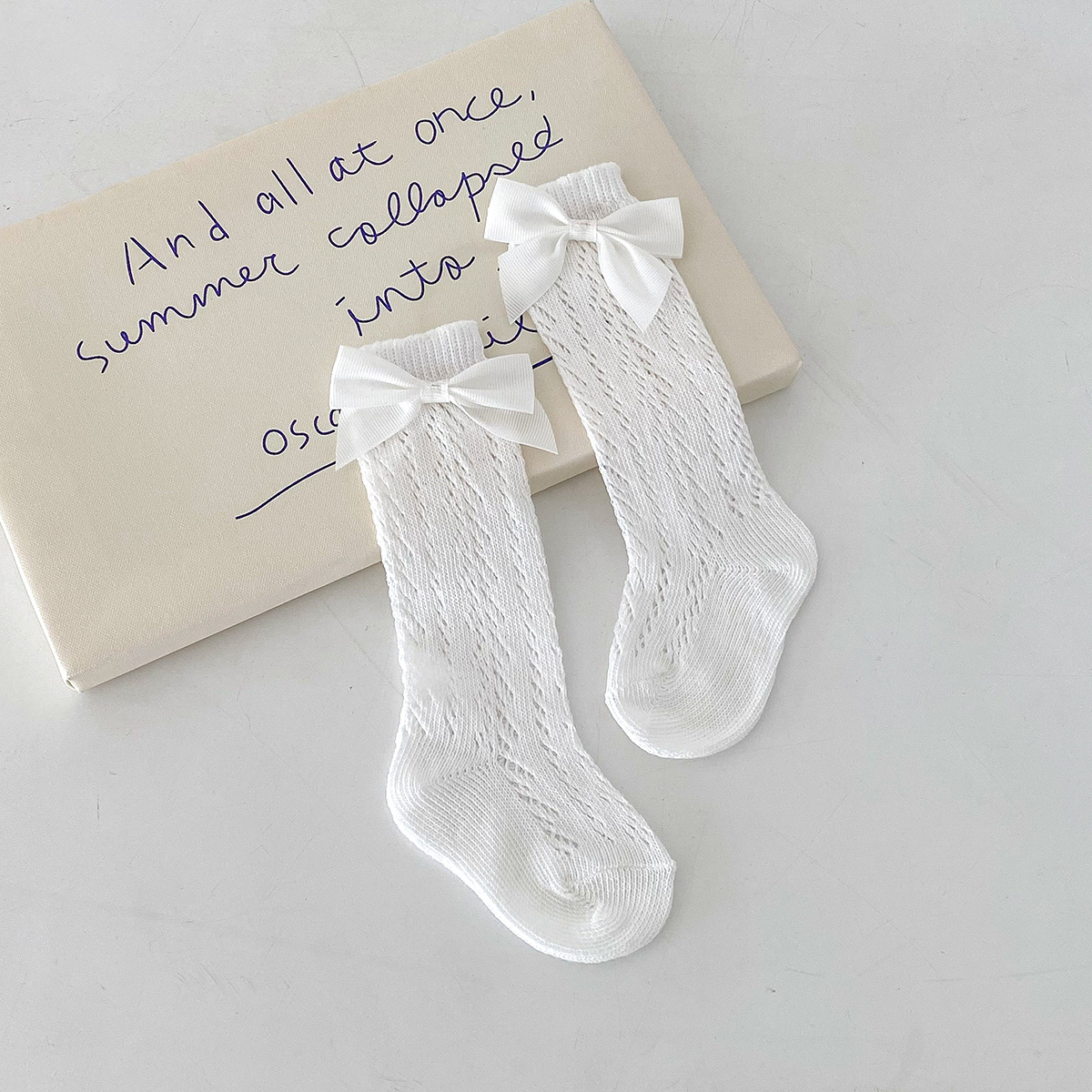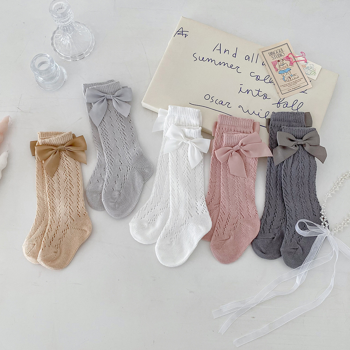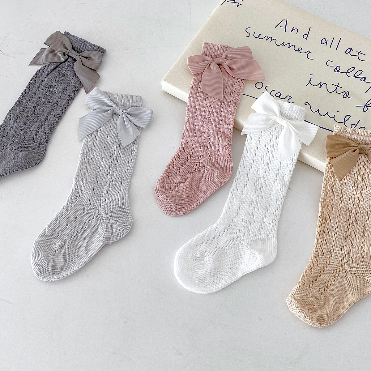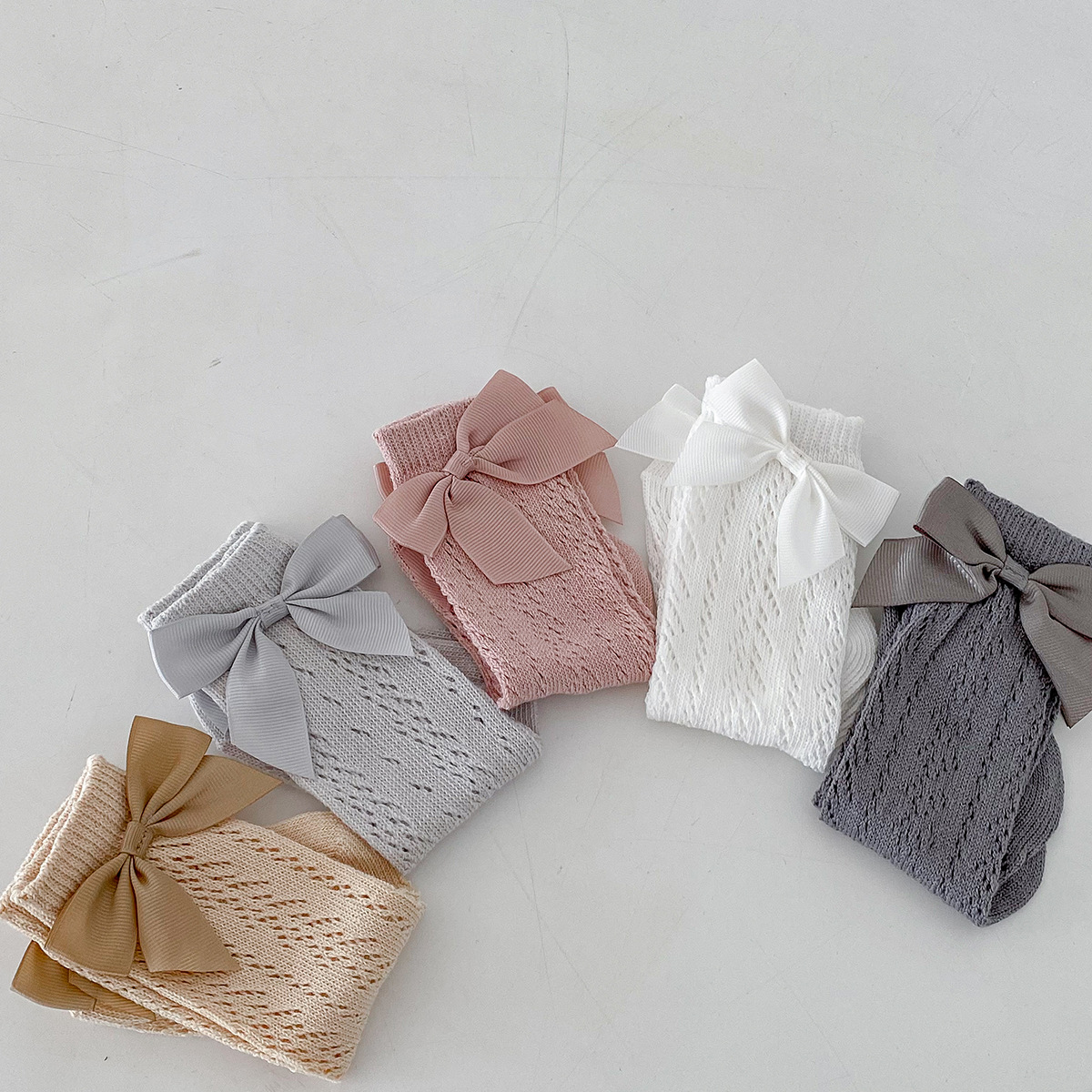 Dianxi 아기 양말 여름 얇은 활 메쉬 중공 튜브 양말 통기성 신생아 소녀 하이 양말