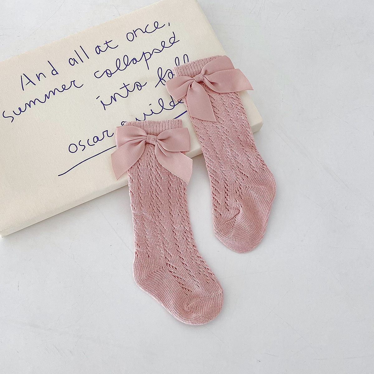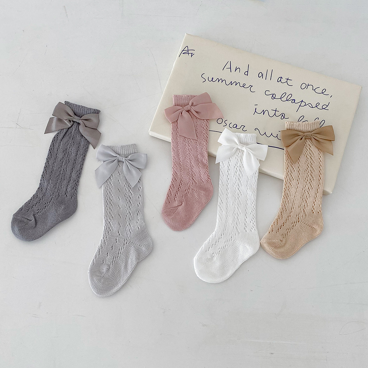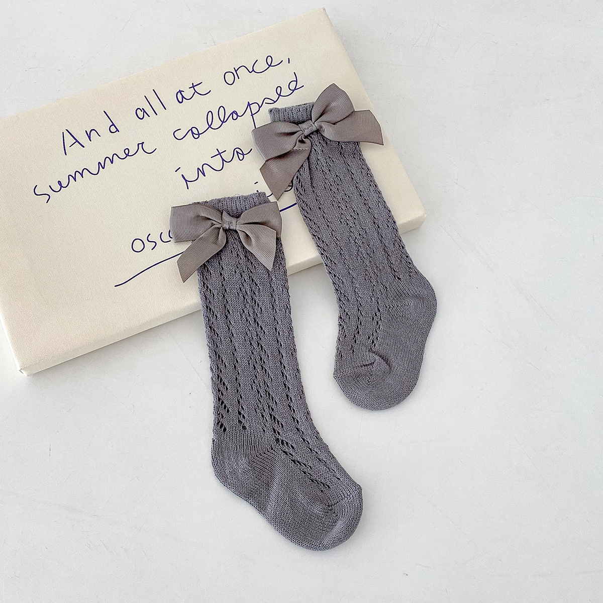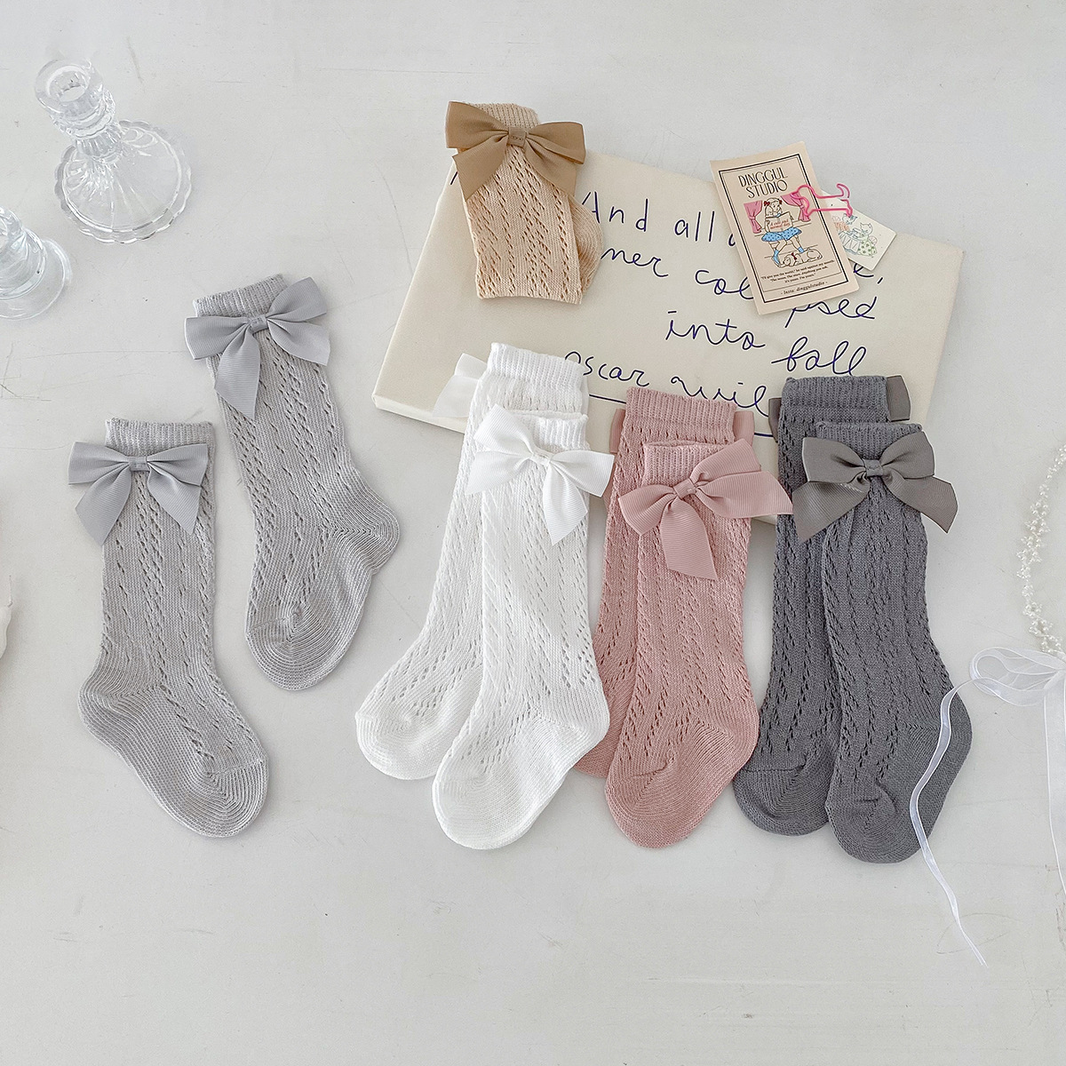 Dianxi 아기 양말 여름 얇은 활 메쉬 중공 튜브 양말 통기성 신생아 소녀 하이 양말