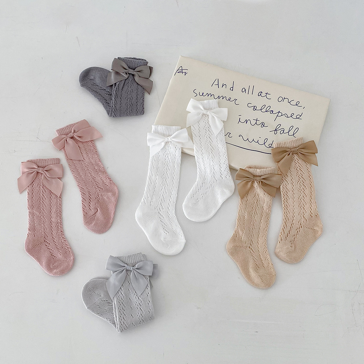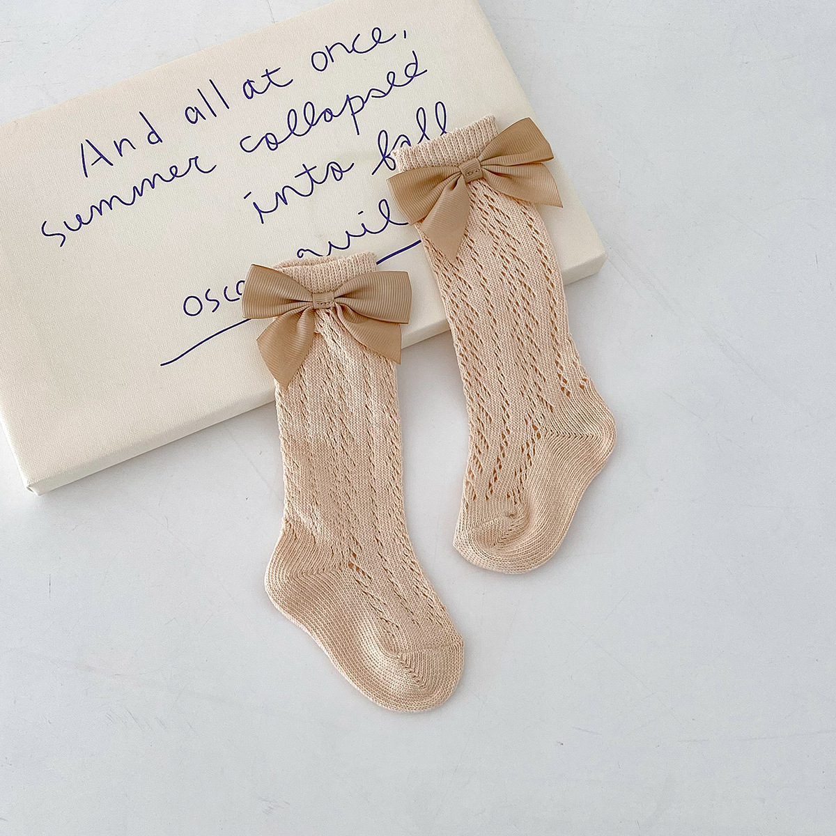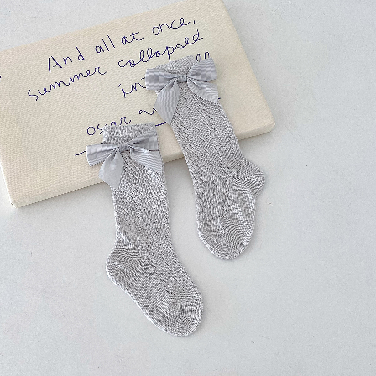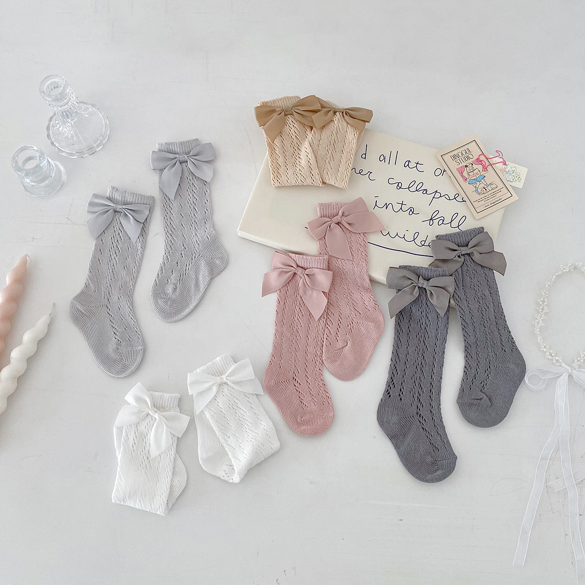 Dianxi 아기 양말 여름 얇은 활 메쉬 중공 튜브 양말 통기성 신생아 소녀 하이 양말
