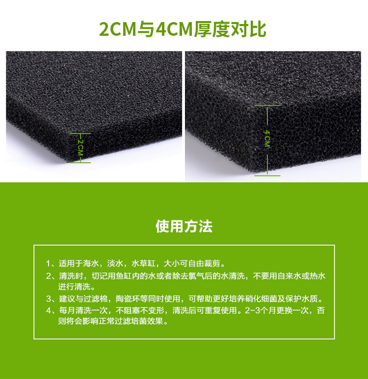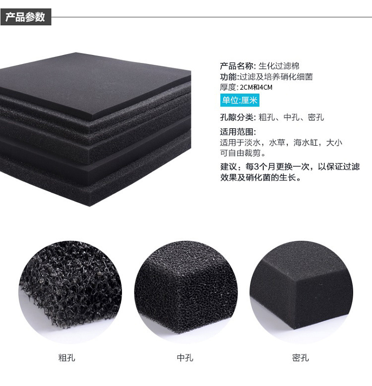수조면 필터면 활성탄 정수면 수족관 필터 재료 필터 재료 정수 두꺼운 검은 스폰지 국경 간스토어 가기