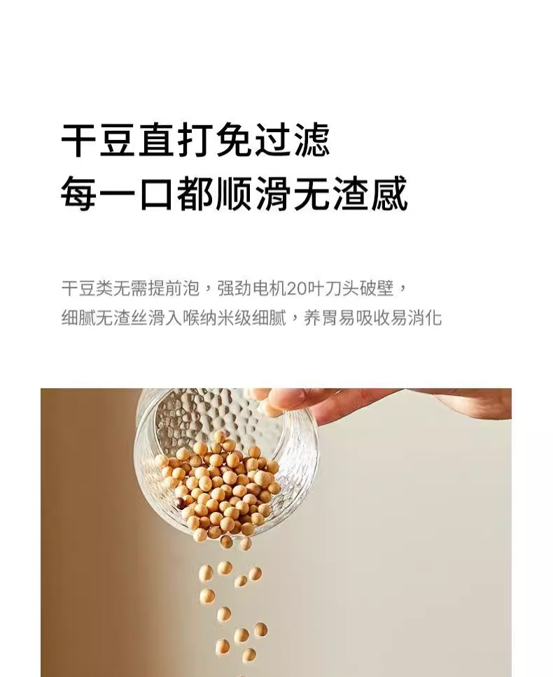 豆浆/米糊/辅食/果汁/花茶/烧水壶等一机多用,老人小孩也爱用;