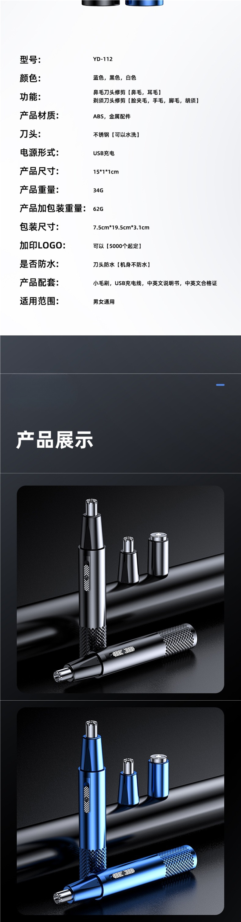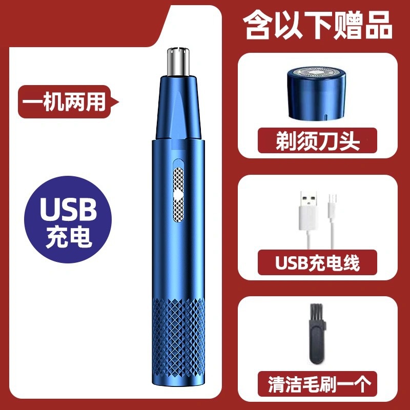 새로운 작은 강철 총 전기 코 머리 트리머 충전식 머리 면도 코 머리 청소 가위 청소 유물스토어 가기
