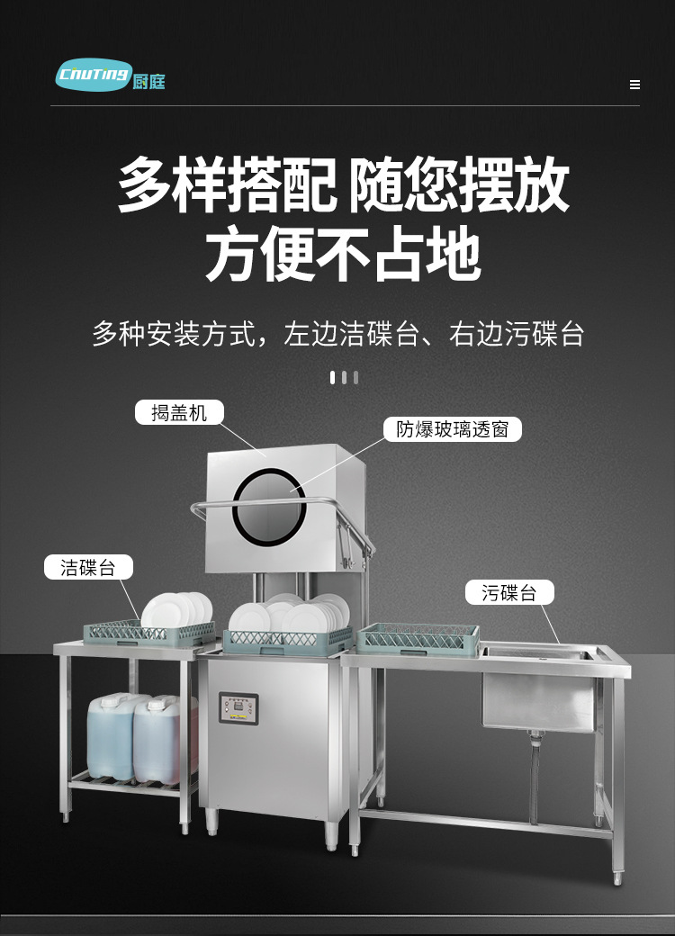 • 식기 세척 테이블 + 더러운 접시 테이블 + 에너지 절약형 플래그십 식기 세척기