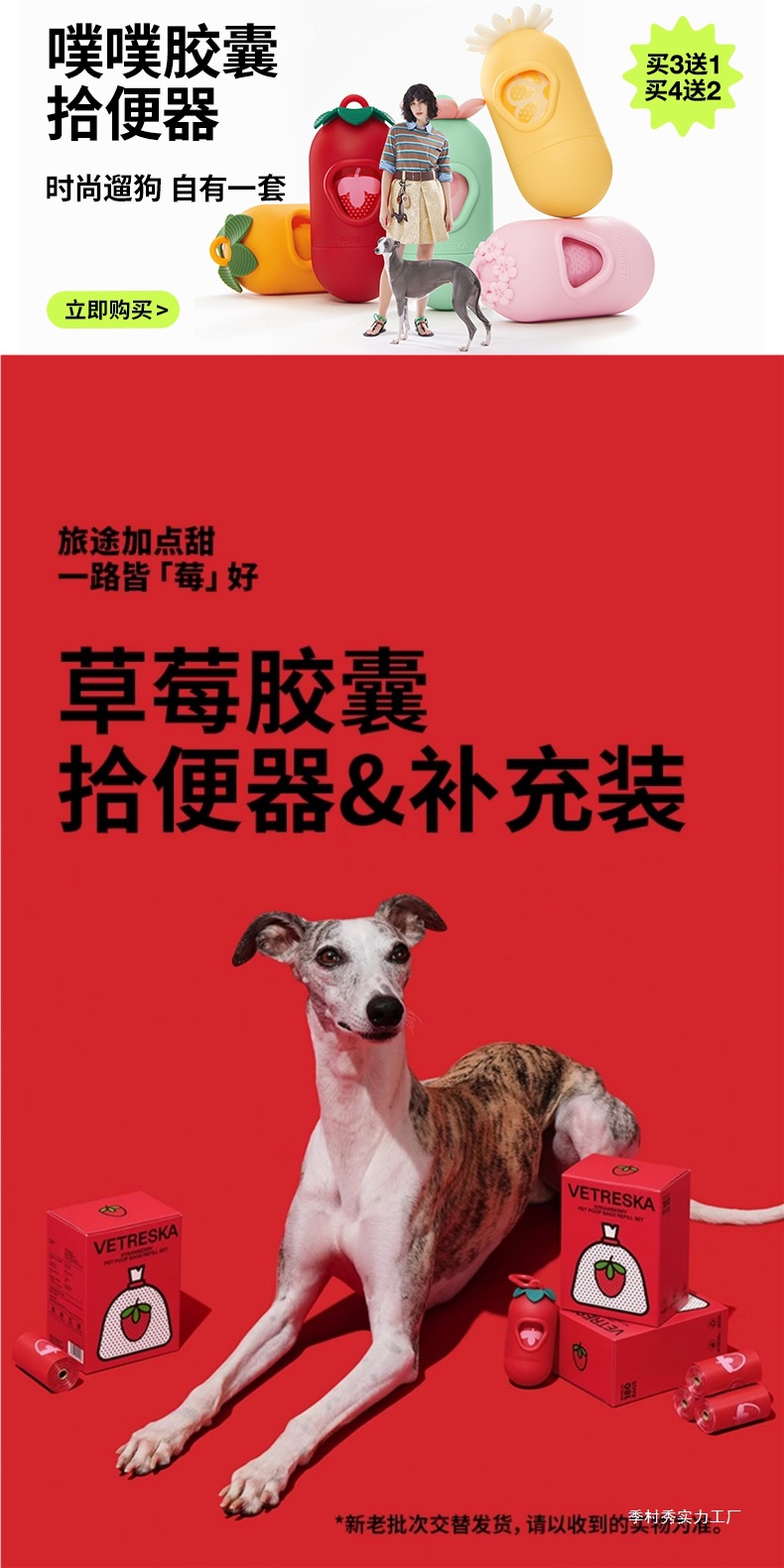 붙지 않은 딸기 캡슐 화장실 피커 세트 야외 여행 개 걷는 두꺼운 휴대용 똥 따기 가방 세트 지마을스토어 가기