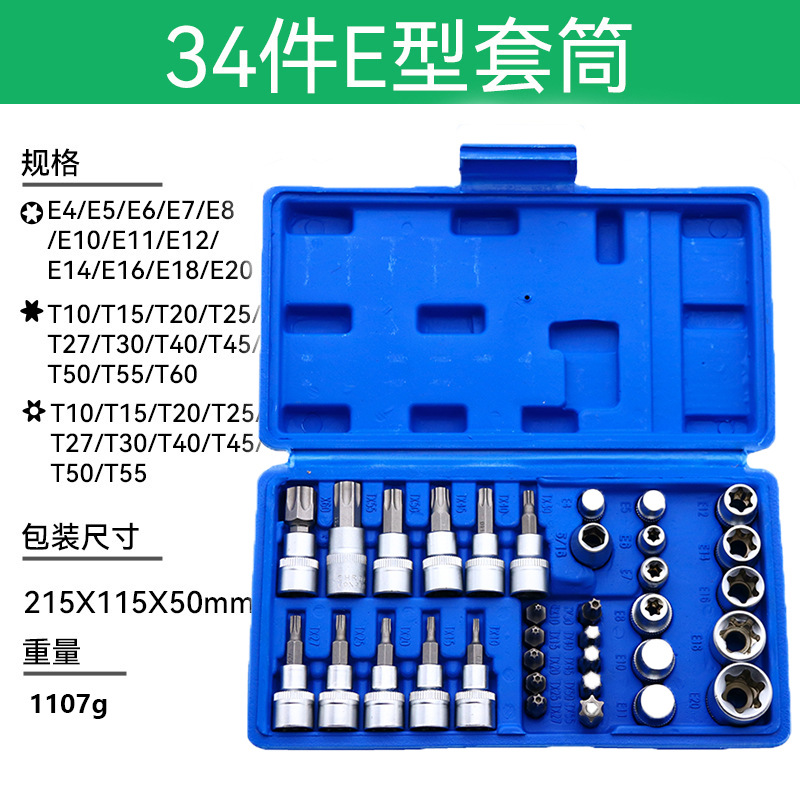 자동차 수리 도구 비트 소켓 세트 3/8 매화 별 모양 비트 조합 세트 34피스 육각 나사 세트스토어 가기