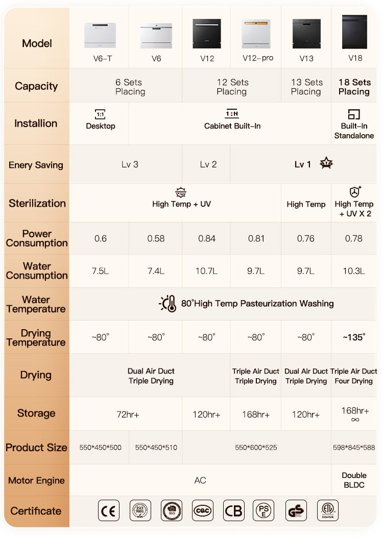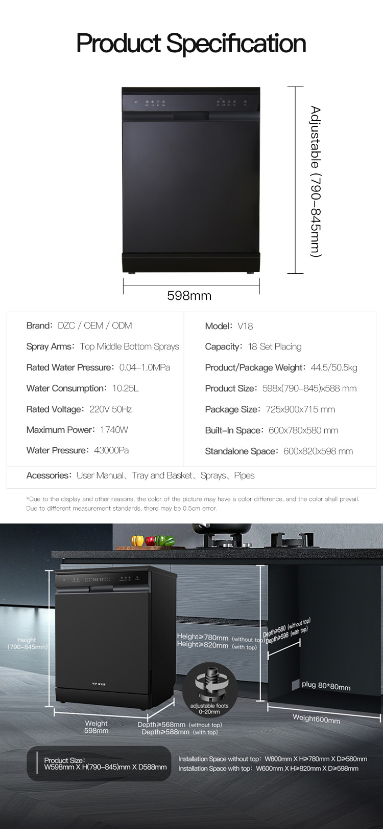 Deshi 주방 식기 세척기 독립형 내장형 이중 목적 V18 세트 소독 건조 예약 트리플 스프레이 계층 세척