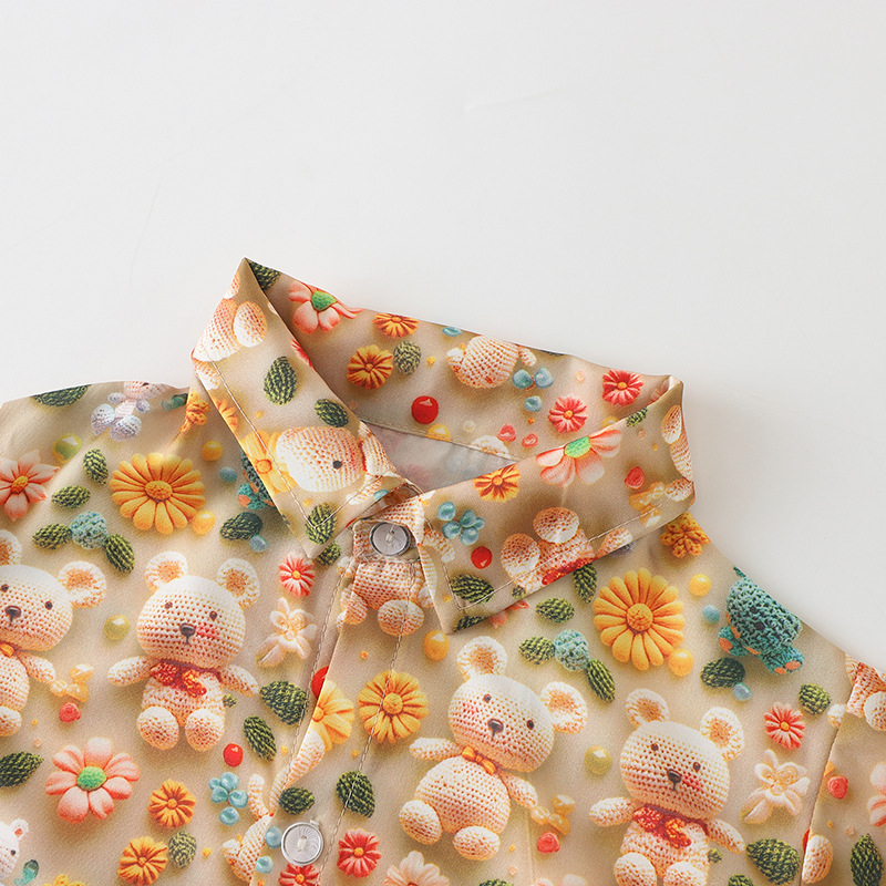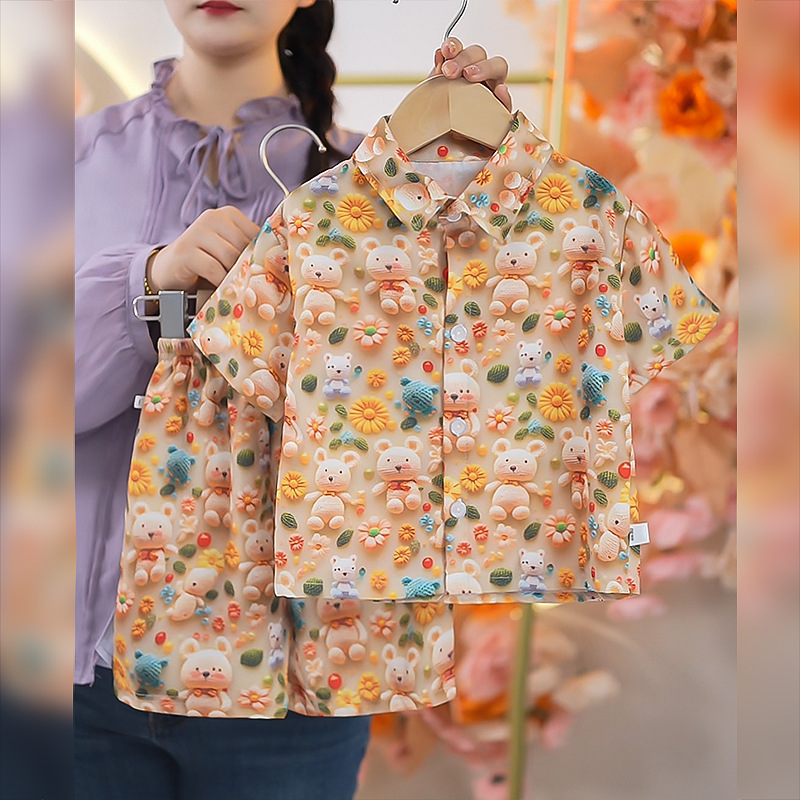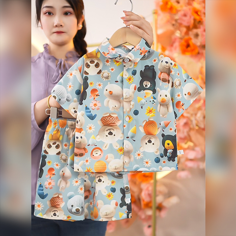 여름 소년 Pi Shuai 비치 스타일 반팔 셔츠 카디건 세트 어린이 꽃 캐주얼 풀 프린트 세트