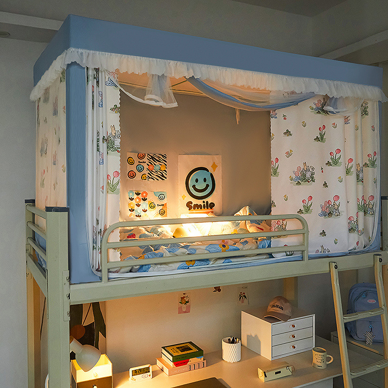 기숙사 학생 플로럴 침대 커튼 모기장 그늘 통합 지퍼 완전히 폐쇄 된 상부 침대 하부 침대 여성용 기숙사