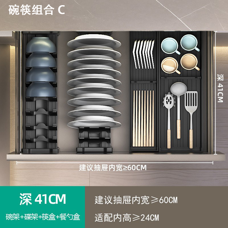 • 조합 C: 그릇걸이 + 접시걸이 + 젓가락통 + 포크와 스푼통, 깊이 41CM ☆