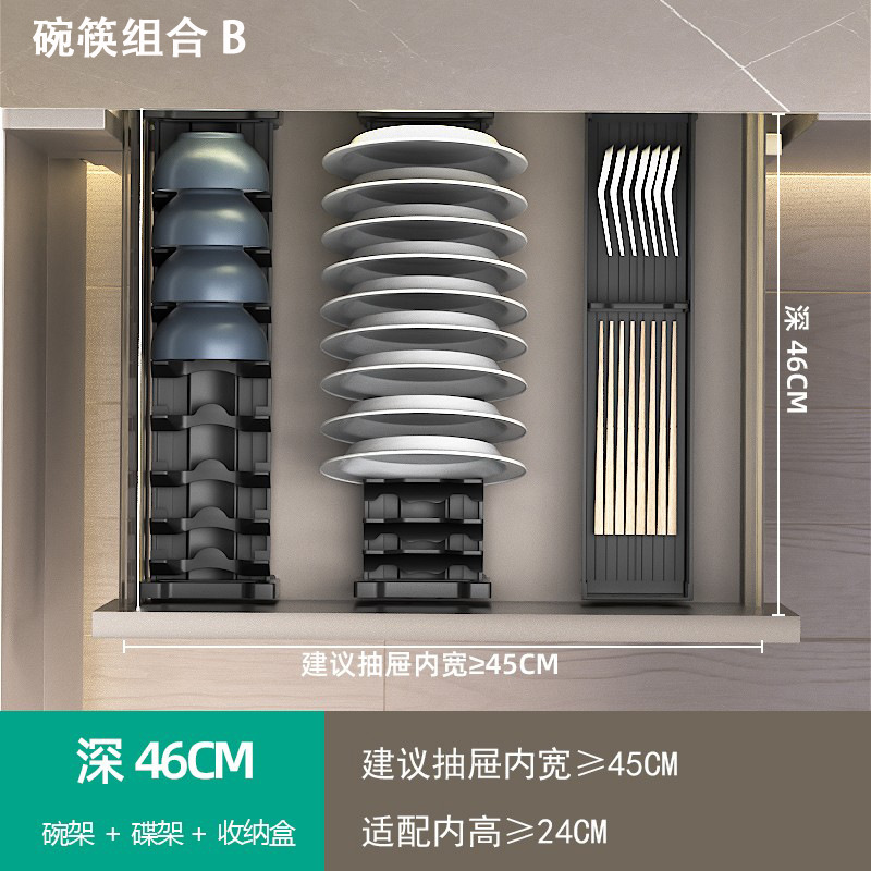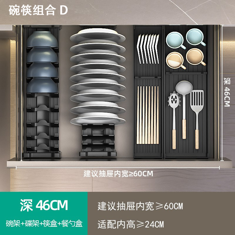 • 조합 D: 그릇걸이 + 접시걸이 + 젓가락통 + 포크와 스푼통, 깊이 46CM ☆