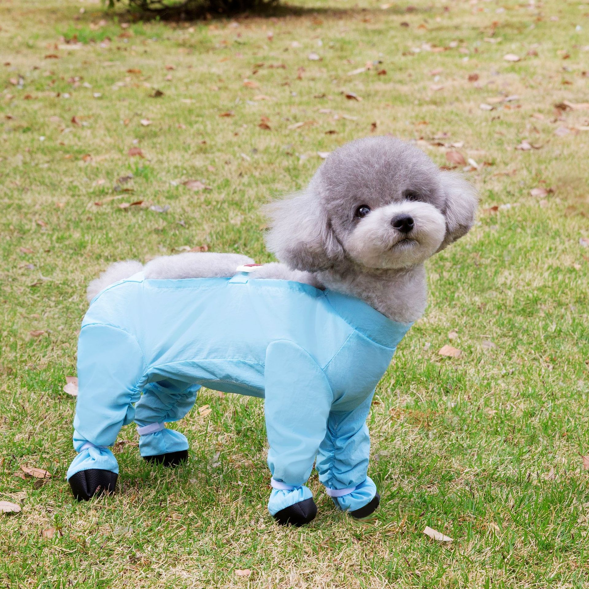 애완견을 위한 새로운 얇고 가벼운 방수 원단, 모서리가 덮혀 있고 배가 덮혀 있어 더러움 방지 및 이슬 방지, 발을 덮는 더러움 방지 바지 25벌스토어 가기