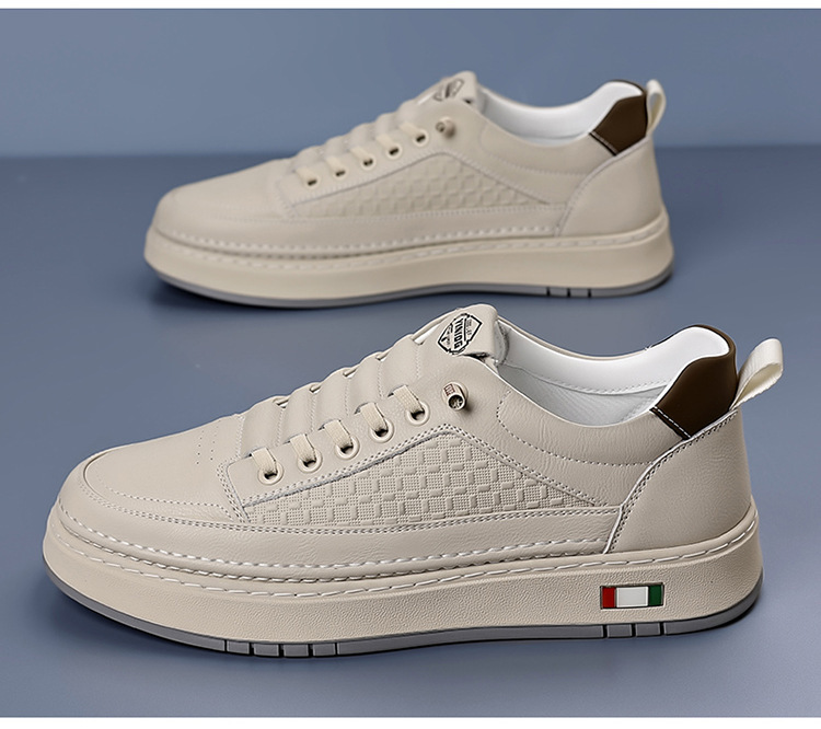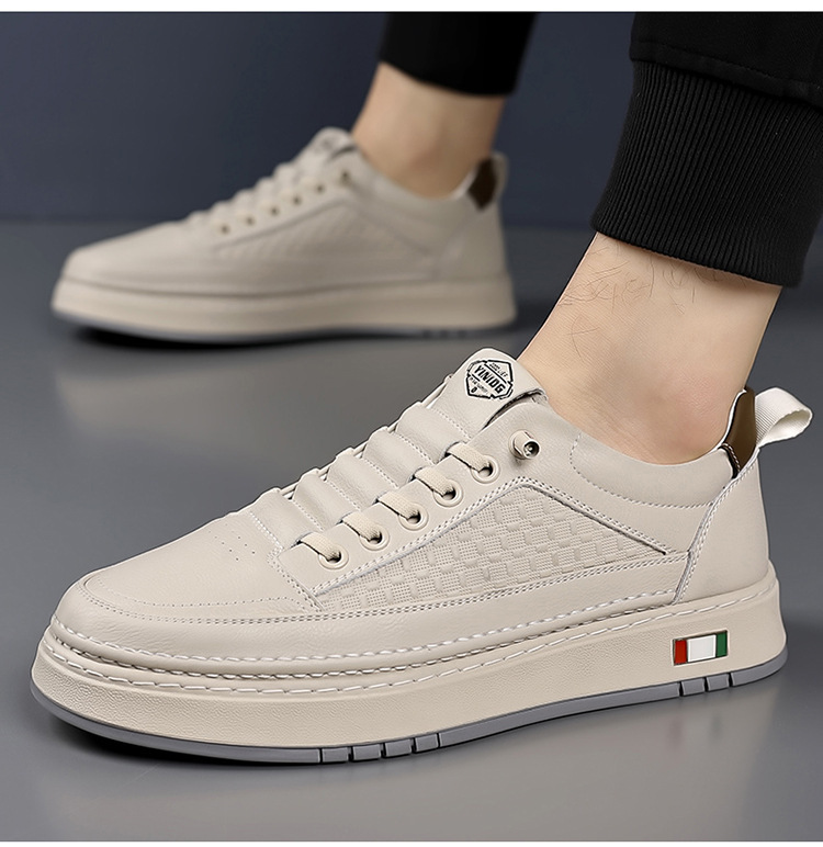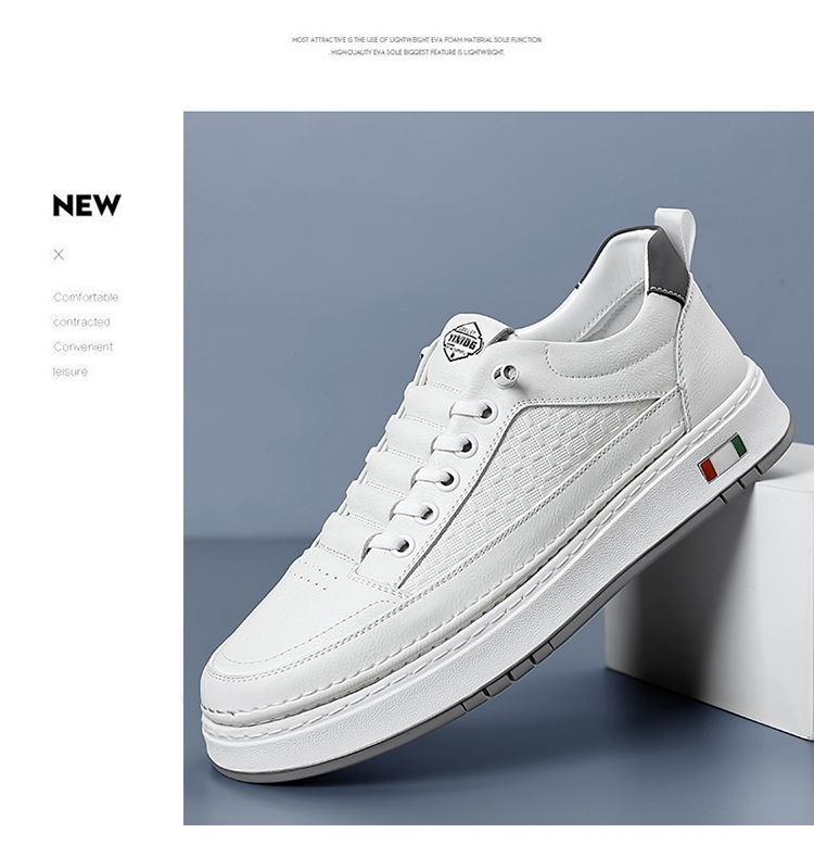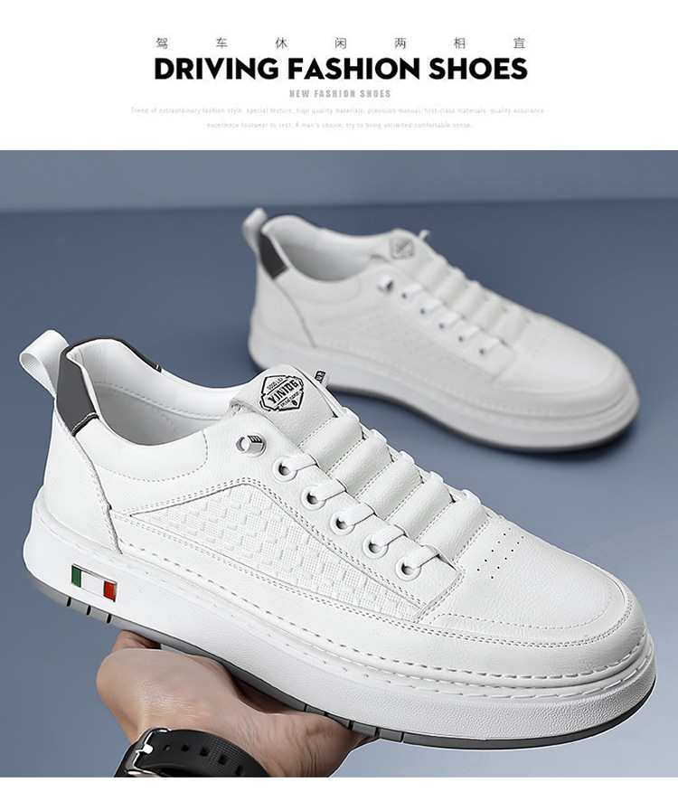 Benu Weisheng 남성 신발 봄 슬립 온 캐주얼 신발 세련된 통기성 흰색 신발 부드러운 밑창 운전 신발 소 가죽 신발
